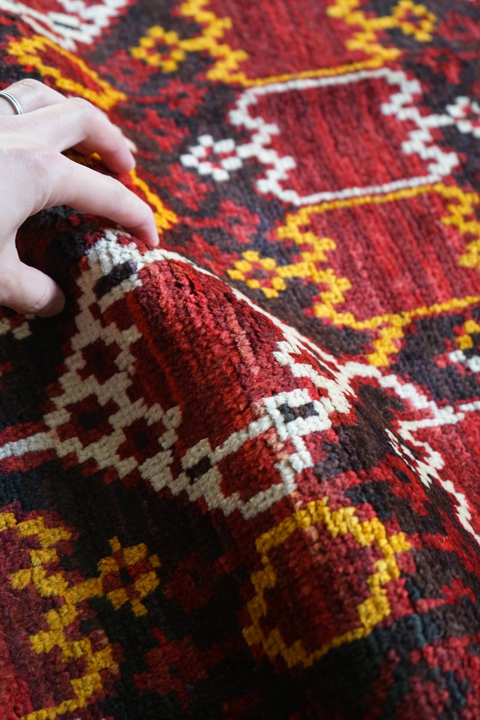 4) 水洗い 当店のすべての羊毛絨毯は水洗いして頂けます。"洗って繰り返し使う"そんな暮らしの道具としての絨毯を理想としています。
