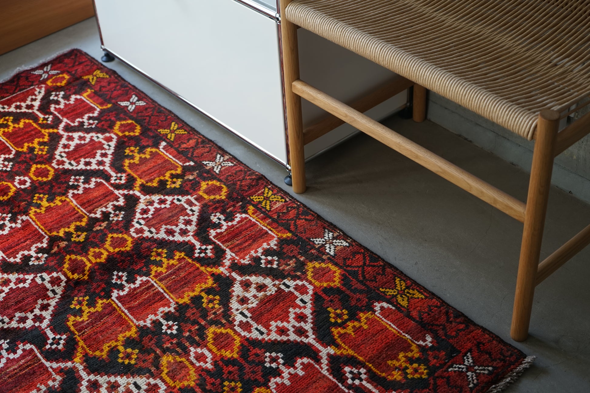 ややコンパクトなサイズ感とスッキリとした配色で、敷いた感じは大人っぽいモダンな印象を与えてくれます。バルーチラグや民族調は好みでも、コテコテに野生味を主張しすぎないのをお探しの方にぴったりです。