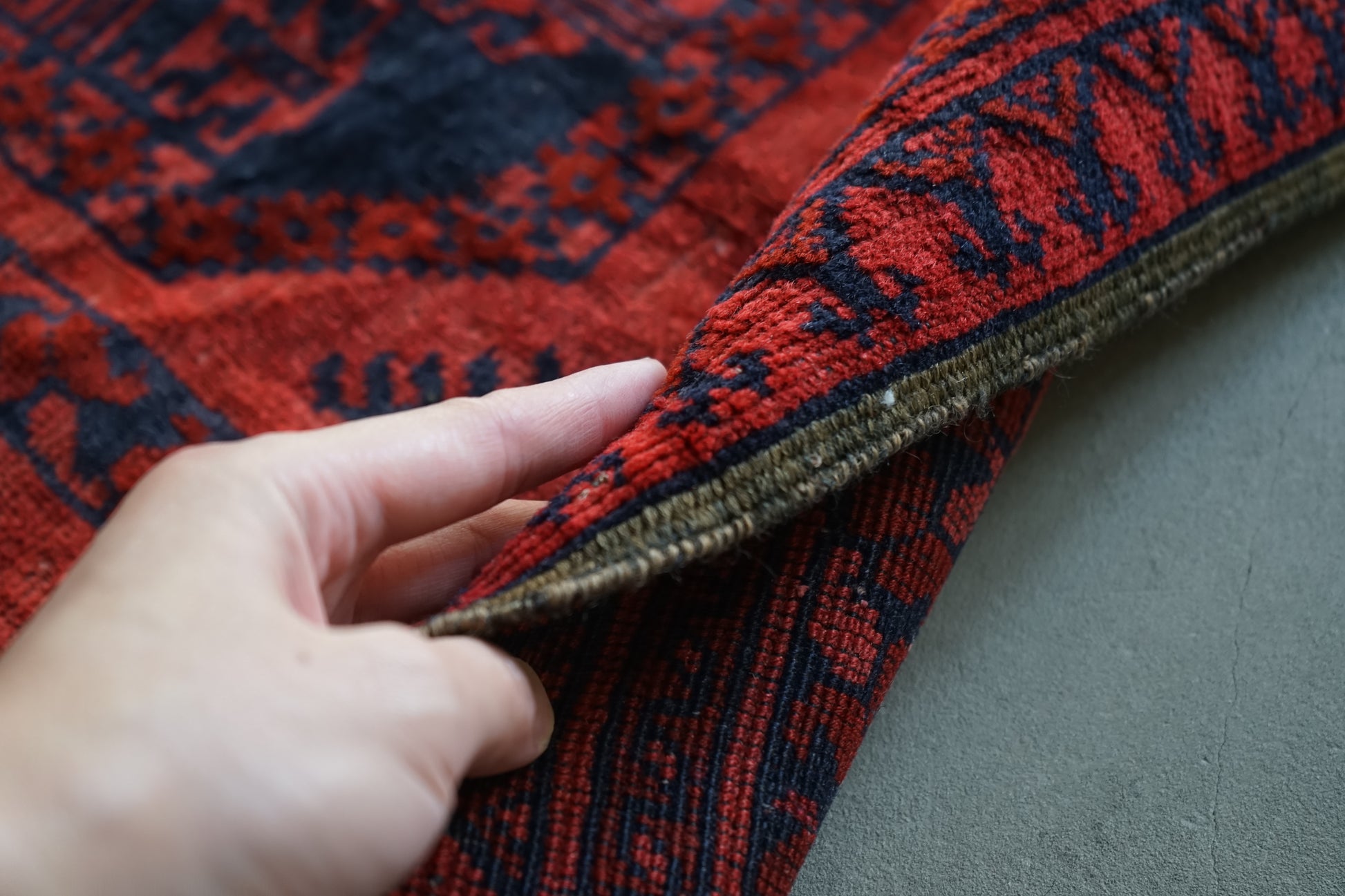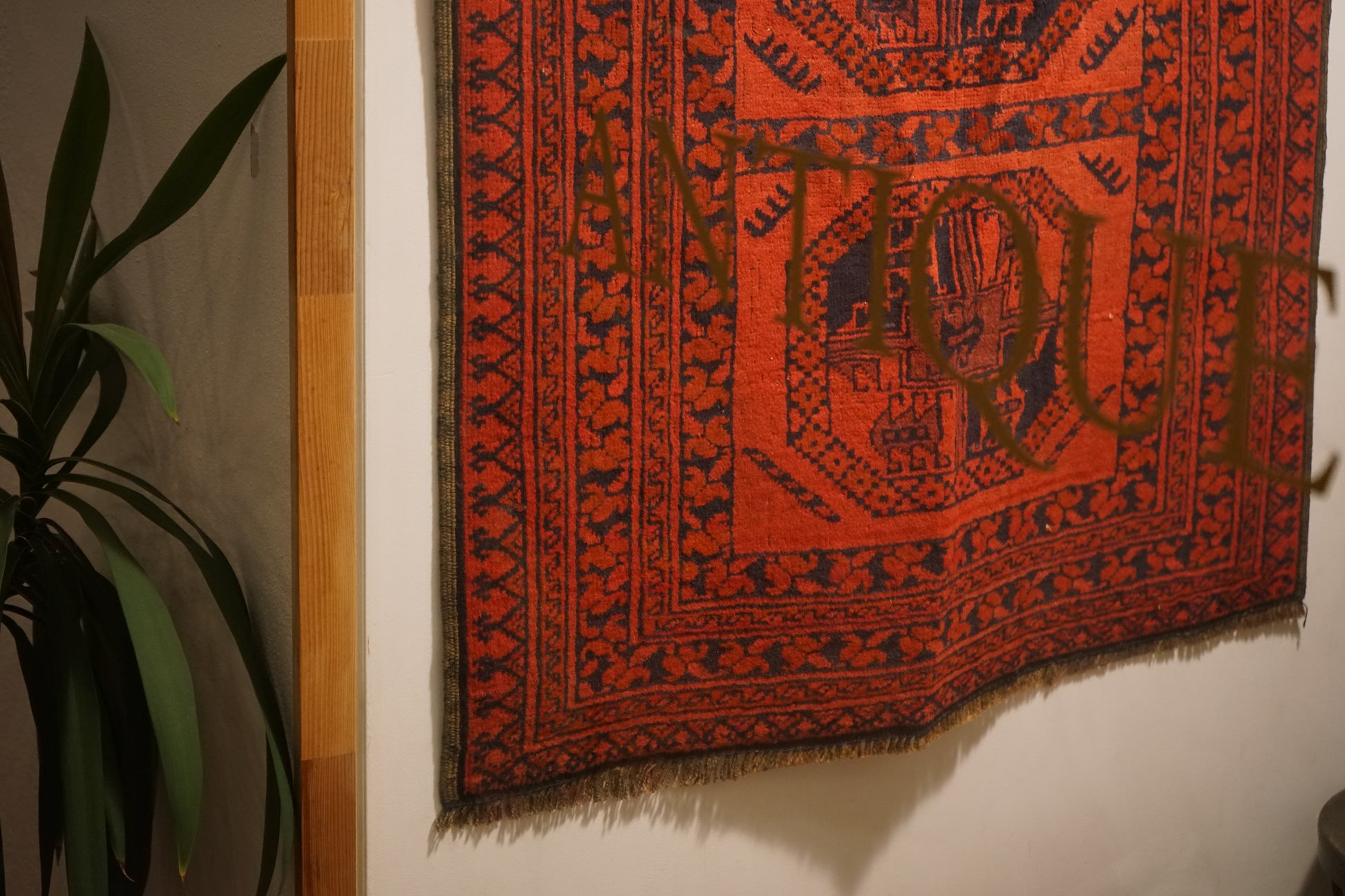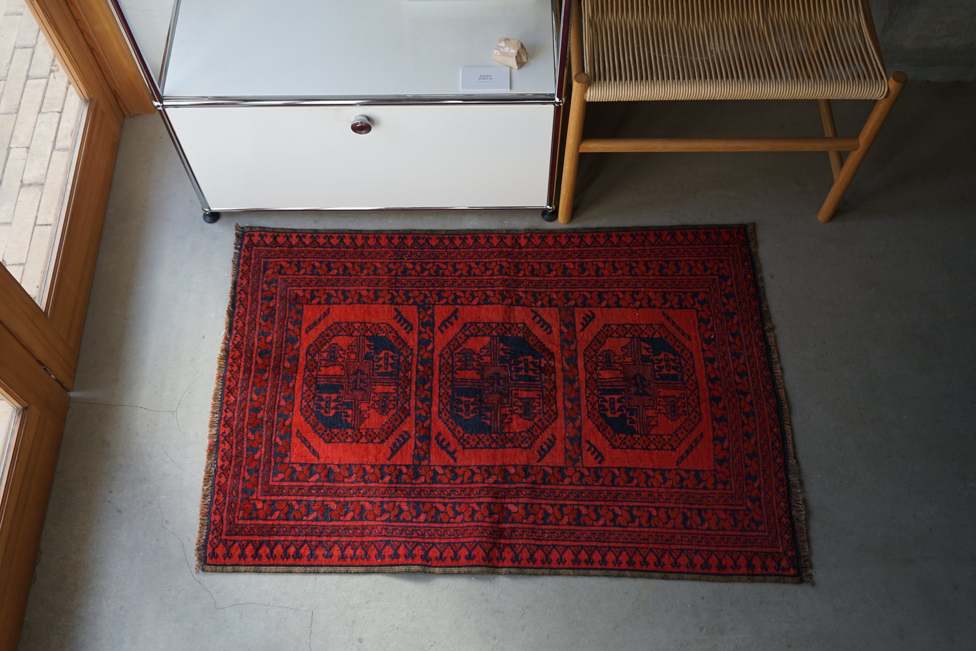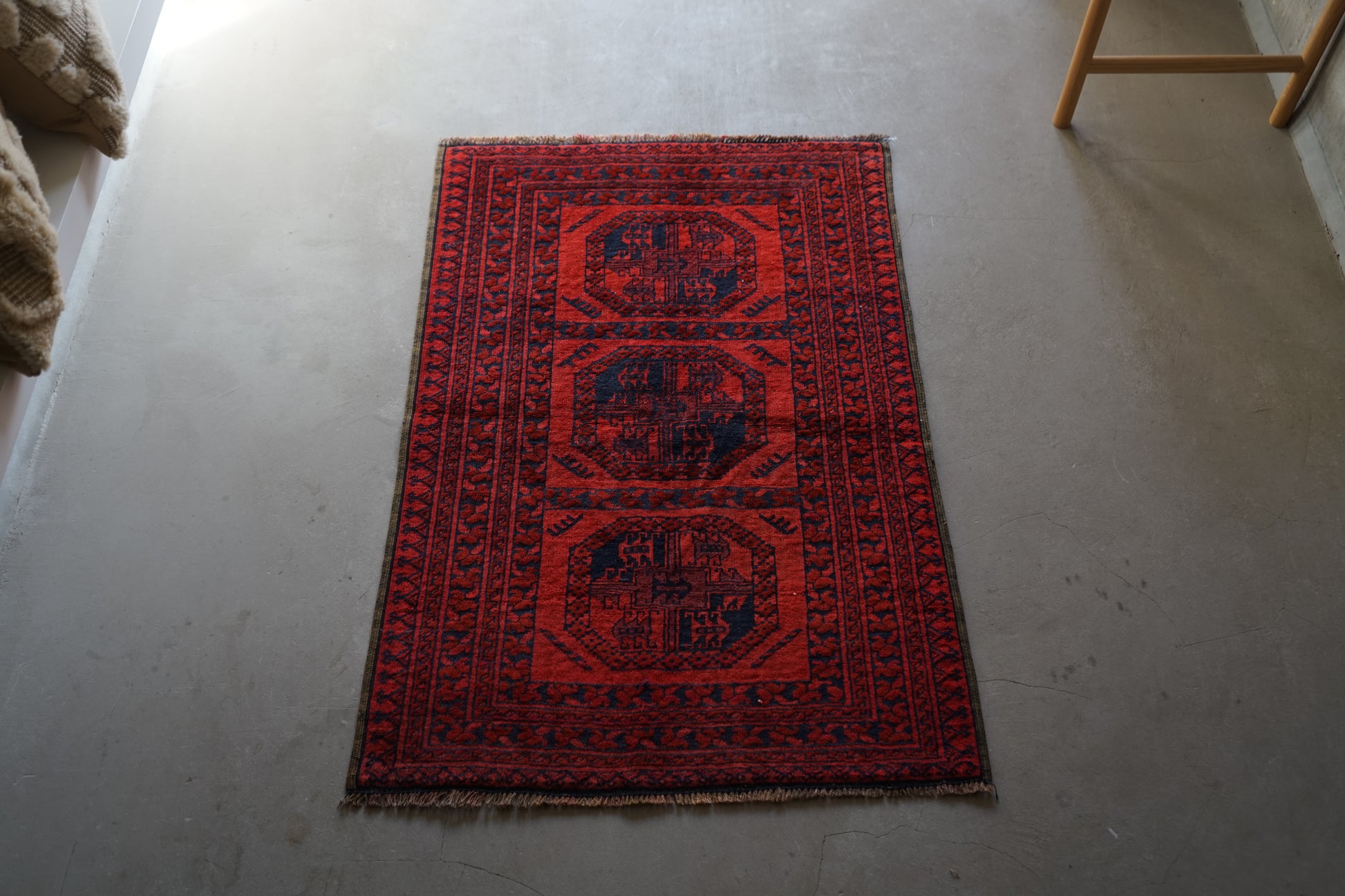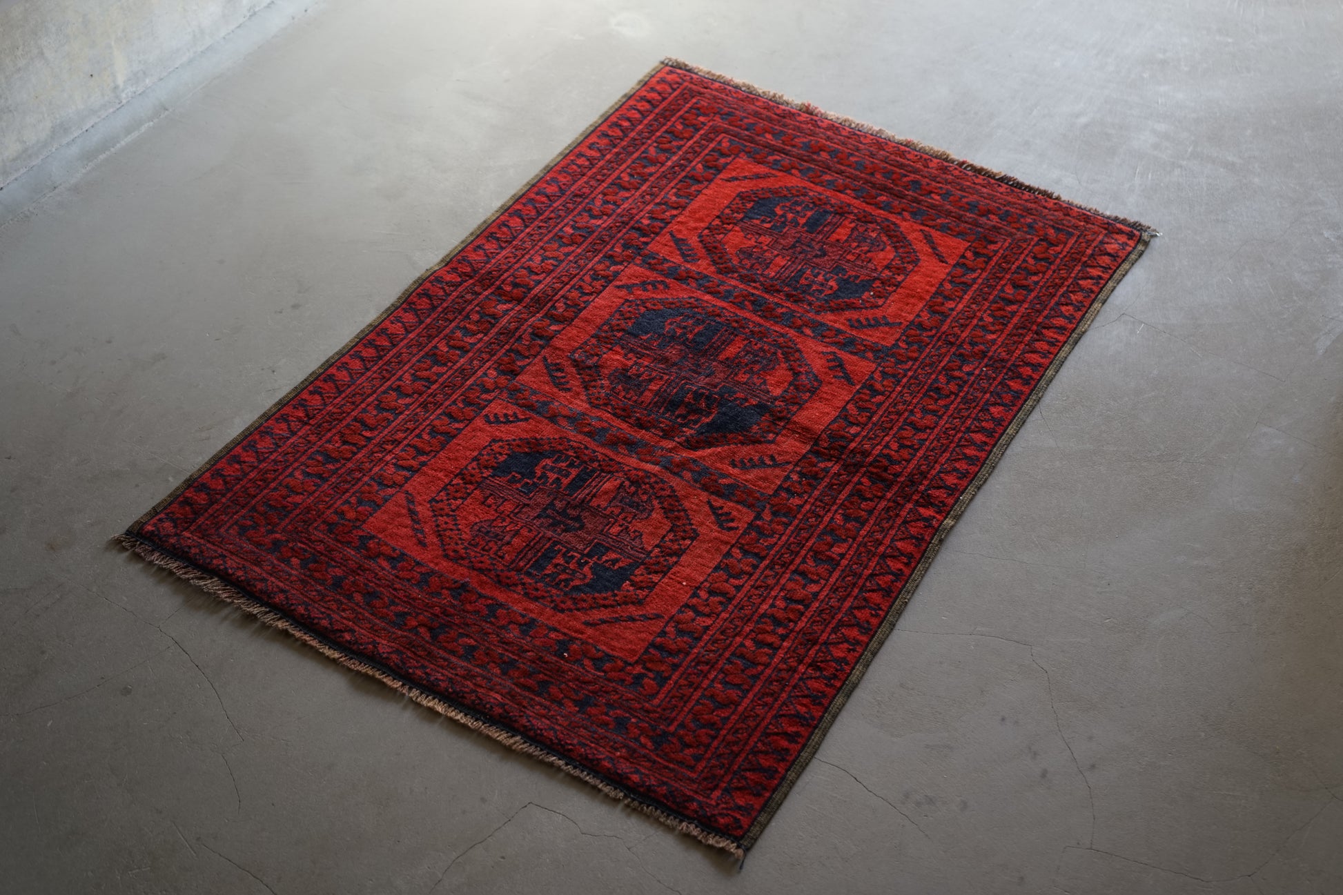 シックなアフガントルクメンです。しっとりとした羊毛、そして薄くてしなやかな佇まいです。