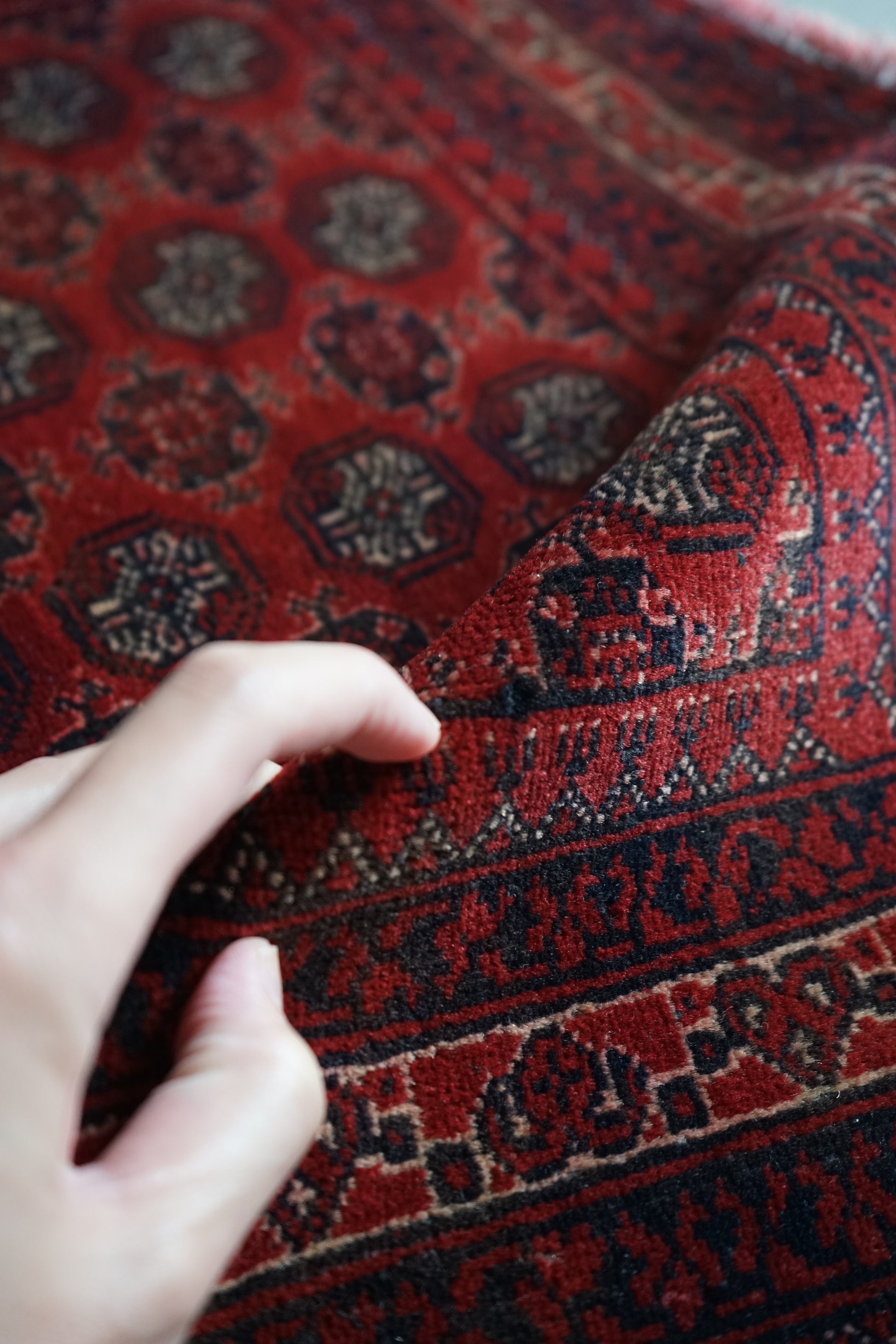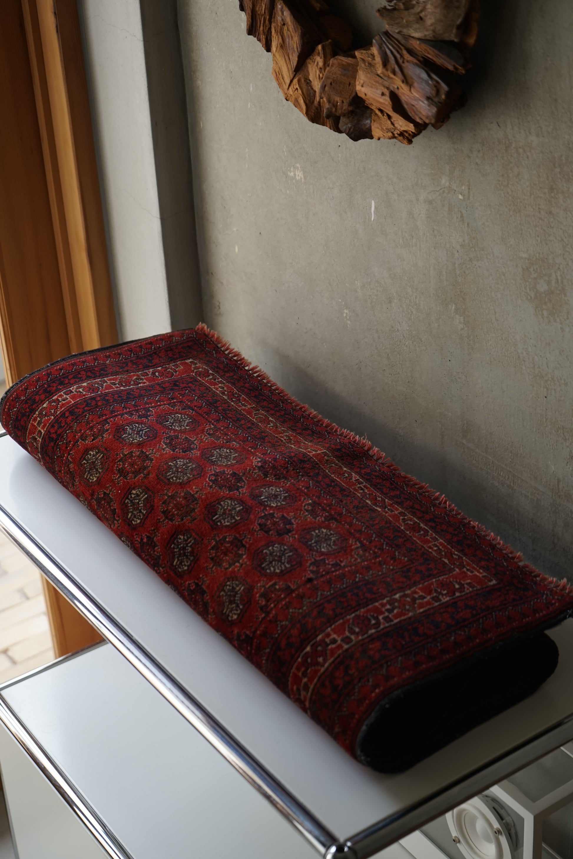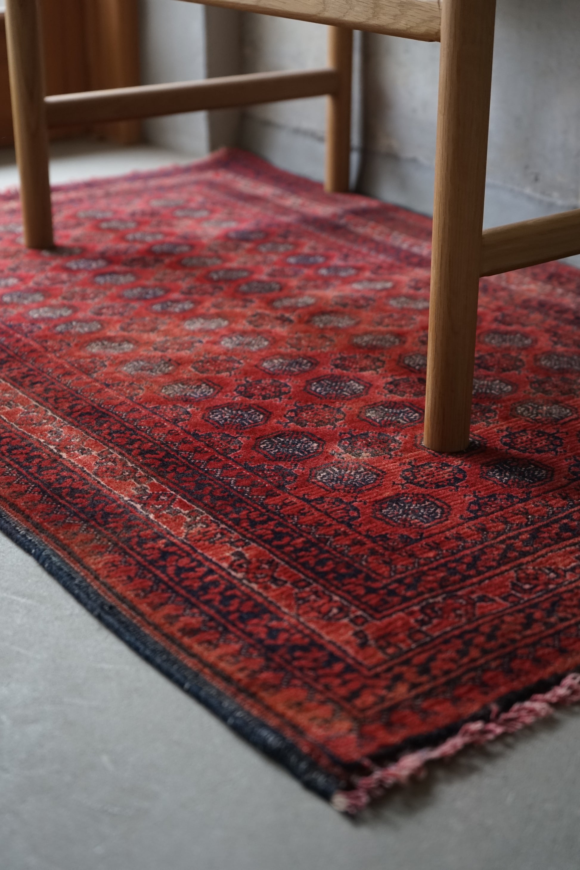 小さなトルクメンラグは沢山ありますが、こちらは絵柄模様もラグのサイズと共に細かく描かれています。小ぶりなだけでこんなにも愛らしくなるのが不思議です。
