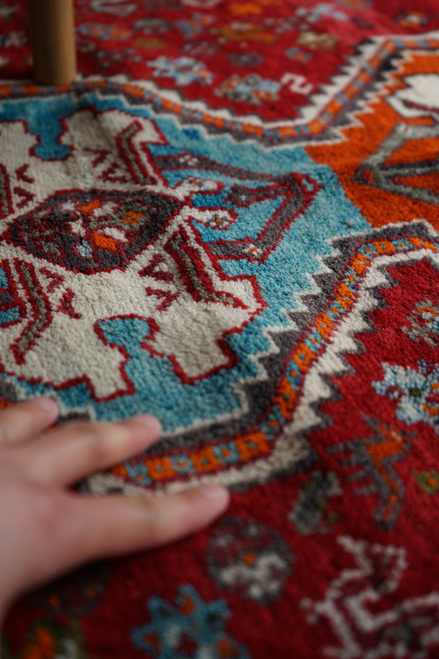 ※ オールド絨毯になります。 商品ページではお伝えしきれないような風合い、ゆがみ、状態がございます。ご理解のある方へお届けさせて下さい。