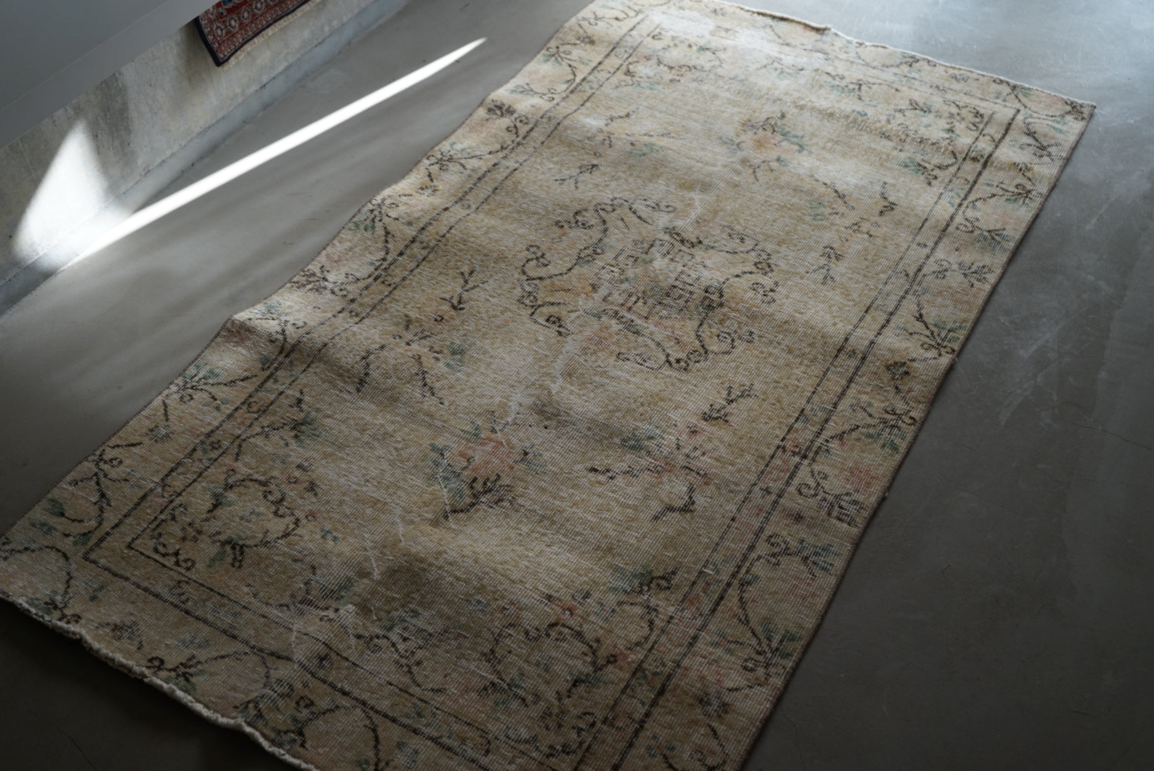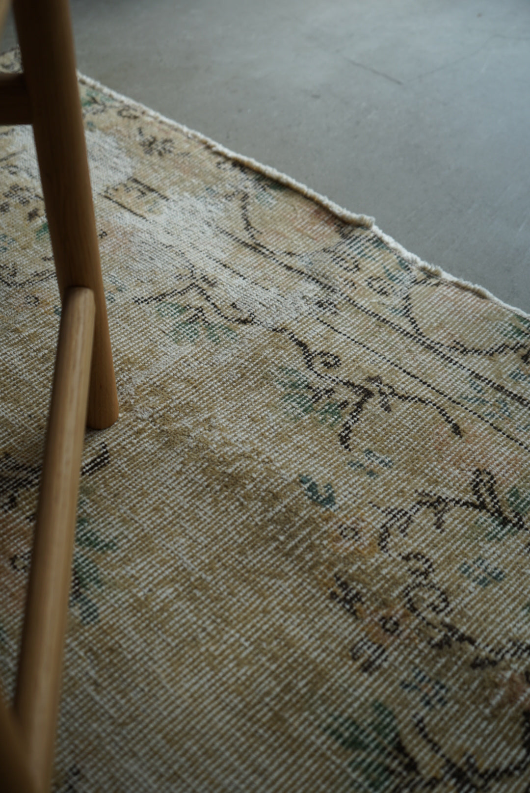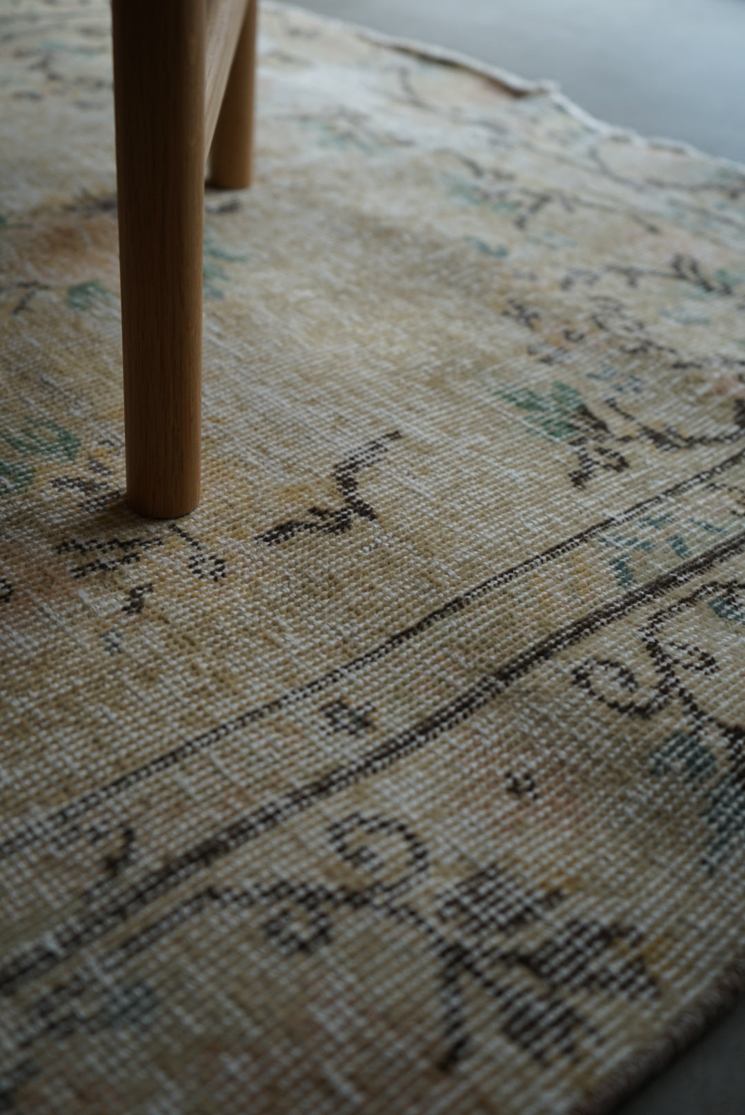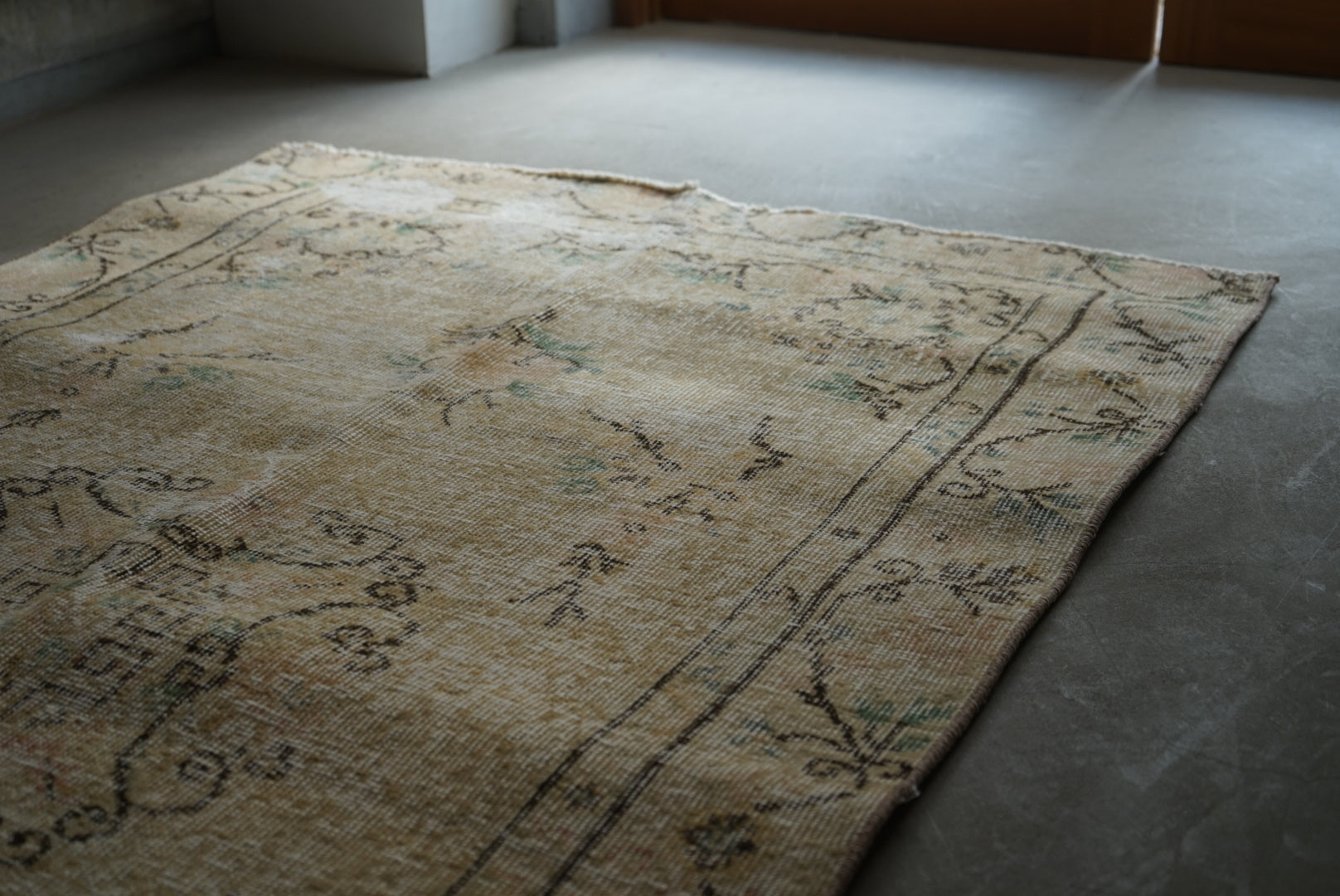 イエローベージュ色のイスパルタ絨毯。クラシカルなものは月日を経た風合いの良さ、個性を大切に厳選しています。