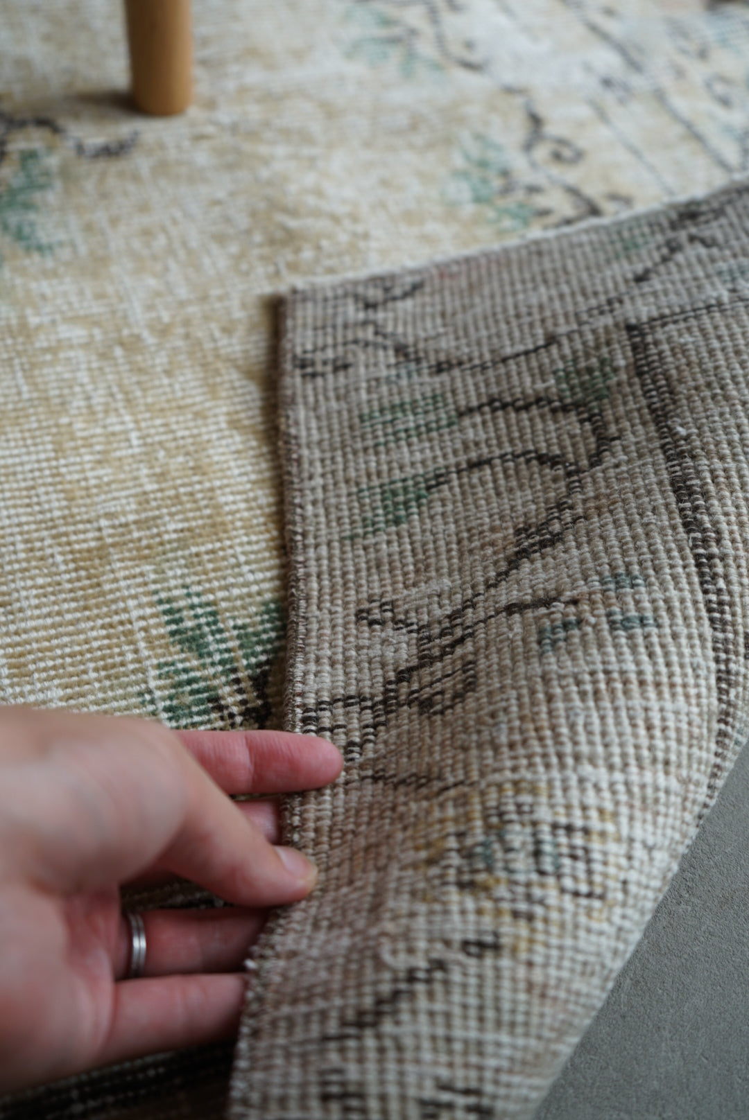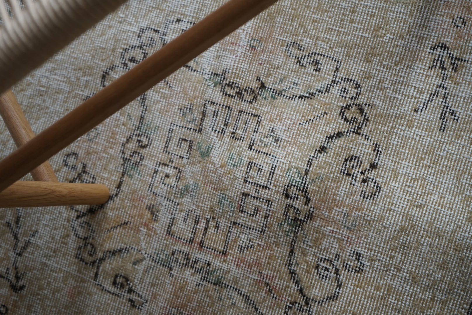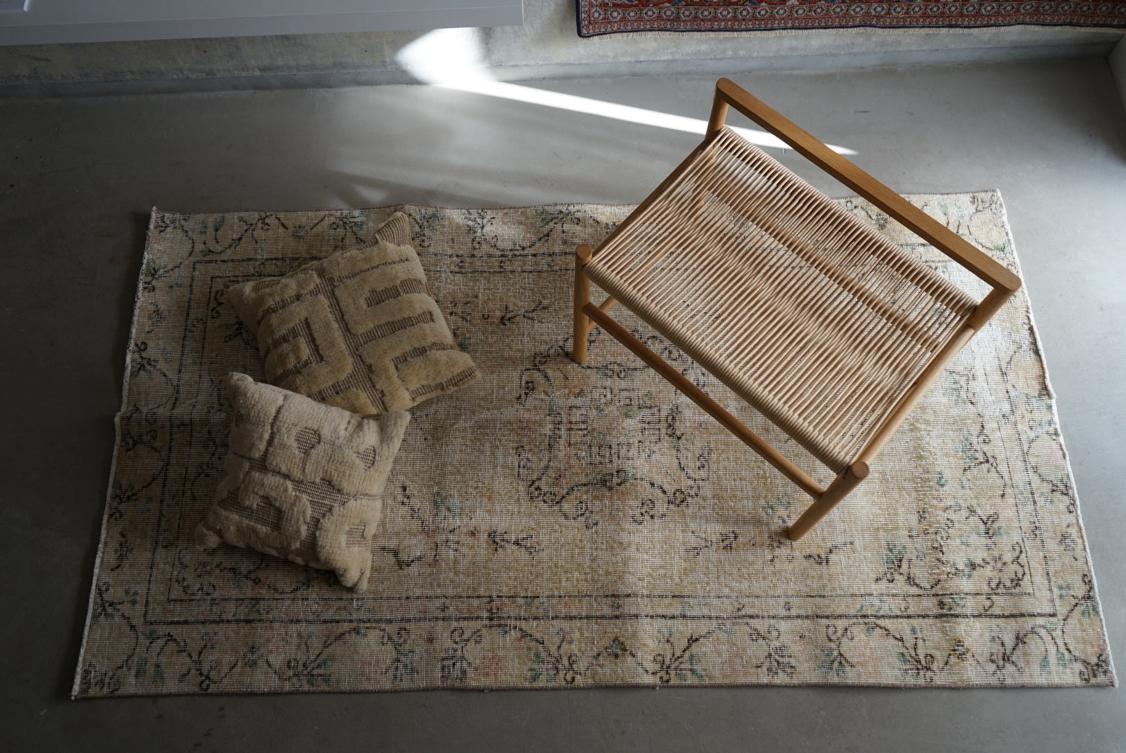 イエローベージュ色のイスパルタ絨毯。クラシカルなものは月日を経た風合いの良さ、個性を大切に厳選しています。