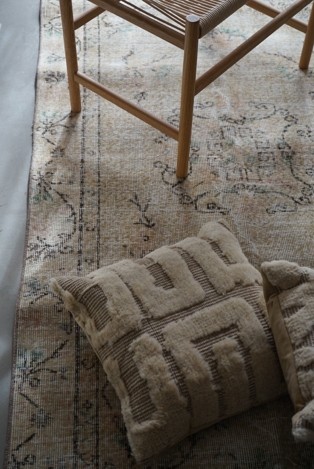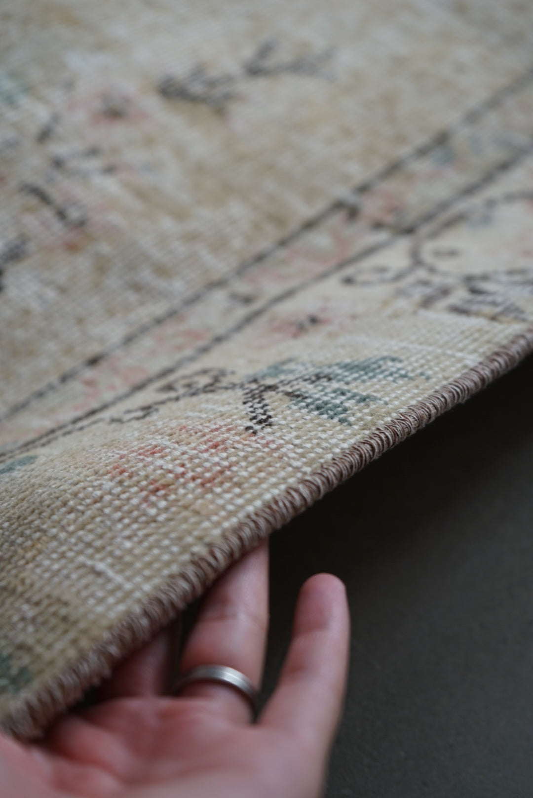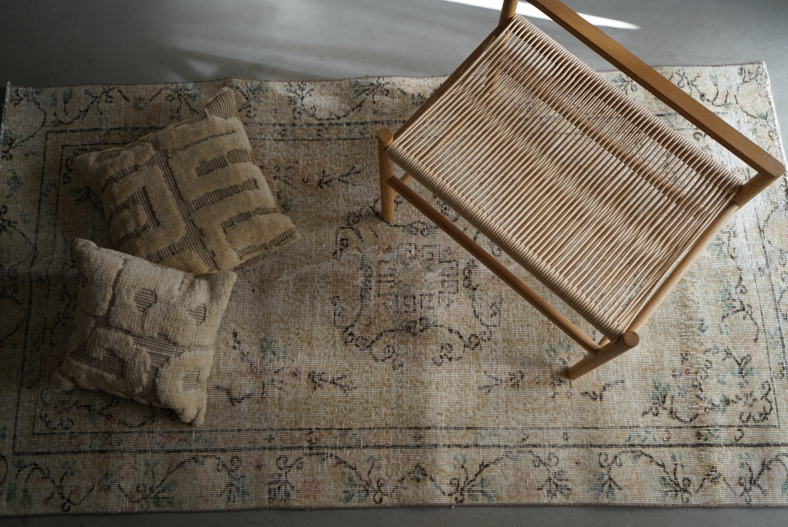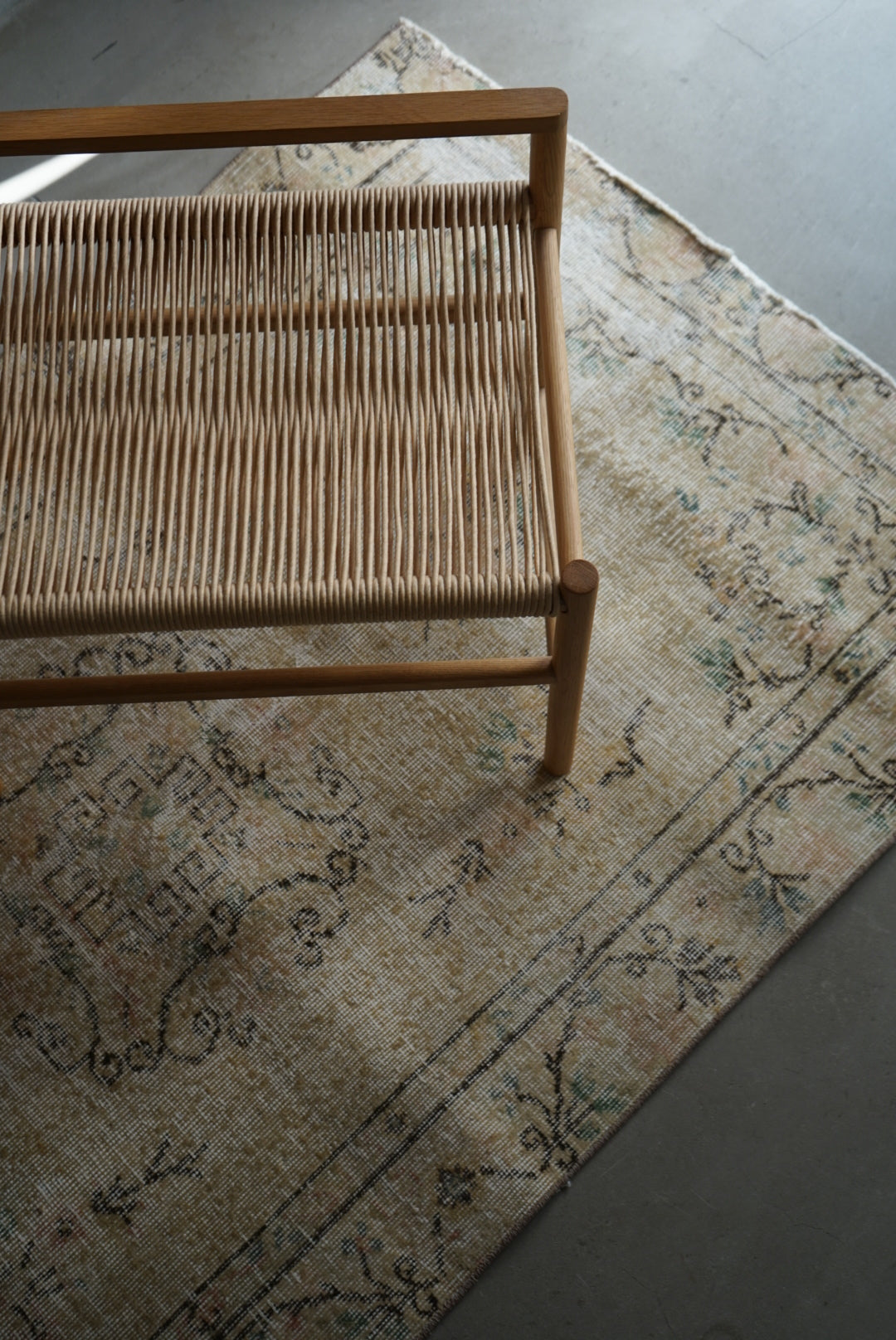 イエローベージュ色のイスパルタ絨毯。クラシカルなものは月日を経た風合いの良さ、個性を大切に厳選しています。