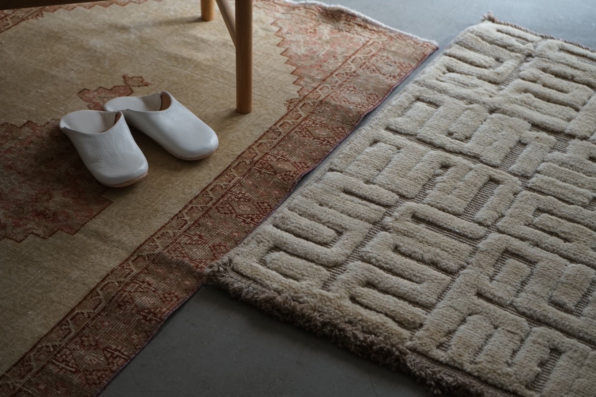 古く使い込まれたものほど、染色の輝きをセレクトでは重視しています。きっとカジュアルラグながらも表情豊かにお楽しみ頂けることと思います。