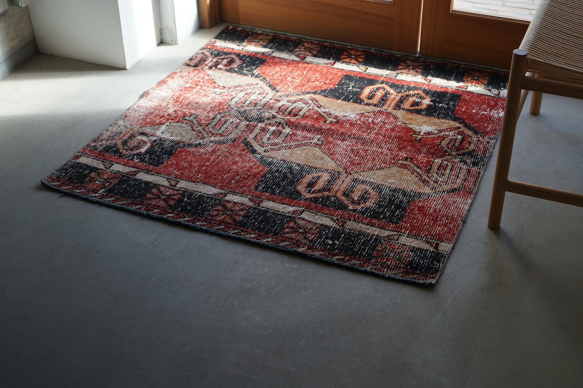 4) 水洗い 当店のすべての羊毛絨毯は水洗いして頂けます。"洗って繰り返し使う"そんな暮らしの道具としての絨毯を理想としています。