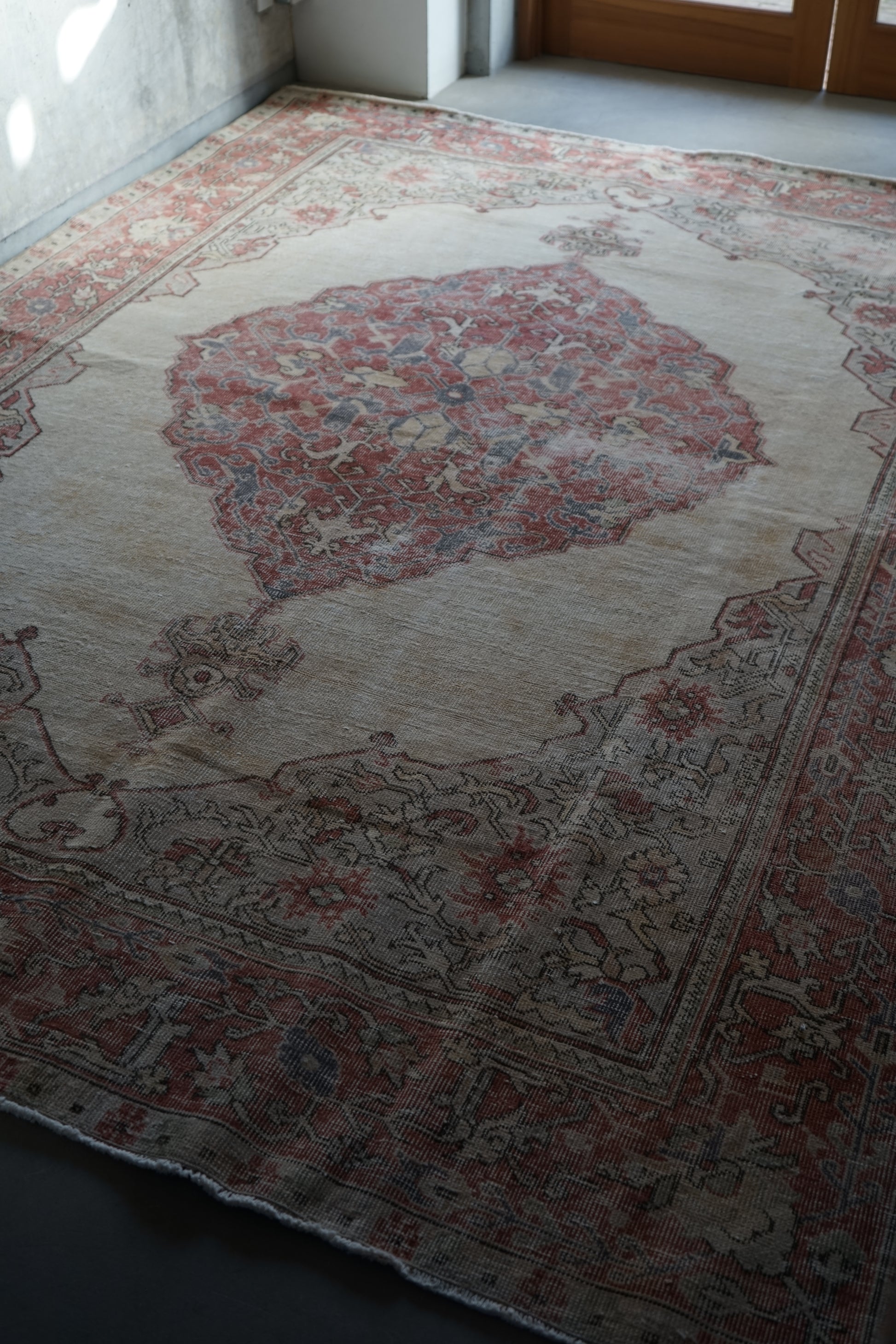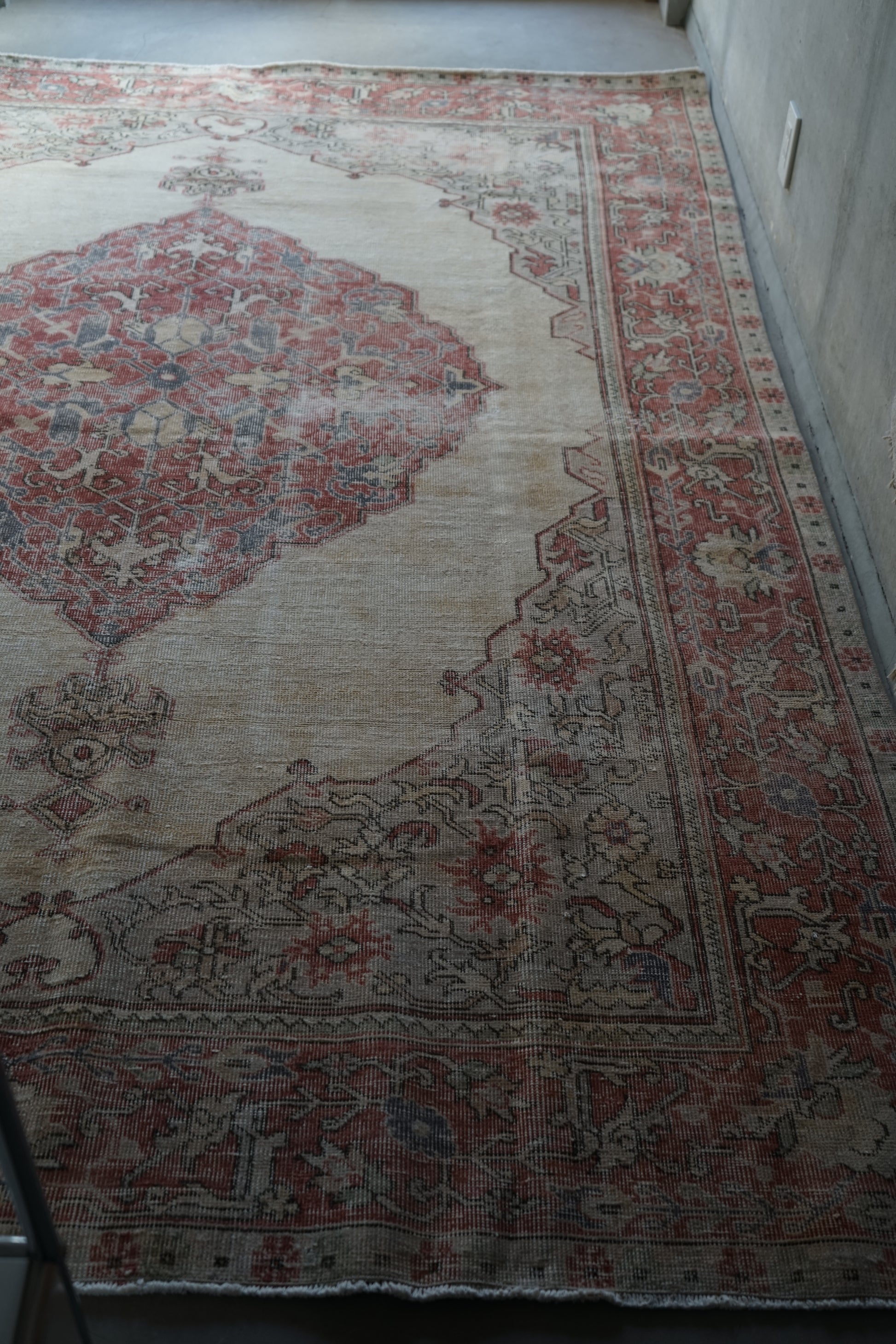 TURKEY OLD ISPARTA PINK BEIGE MEDALLION 1970年代 265 × 194 cm No.TR25213