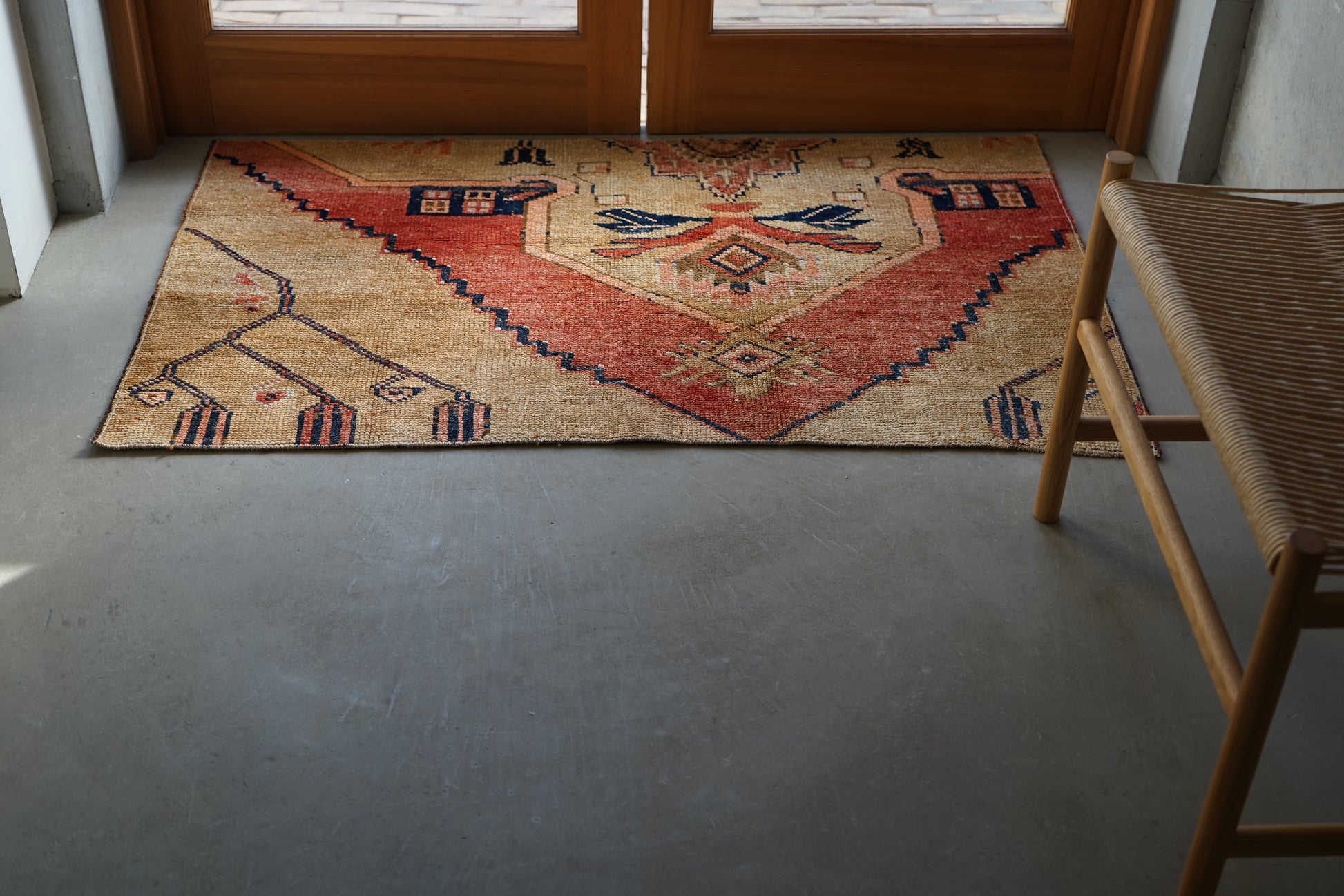 4) 水洗い 当店のすべての羊毛絨毯は水洗いして頂けます。"洗って繰り返し使う"そんな暮らしの道具としての絨毯を理想としています。
