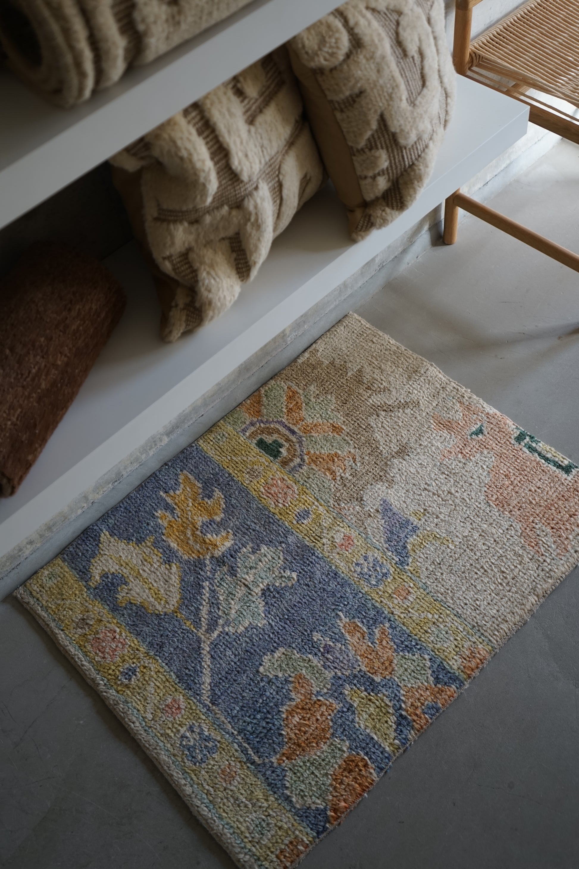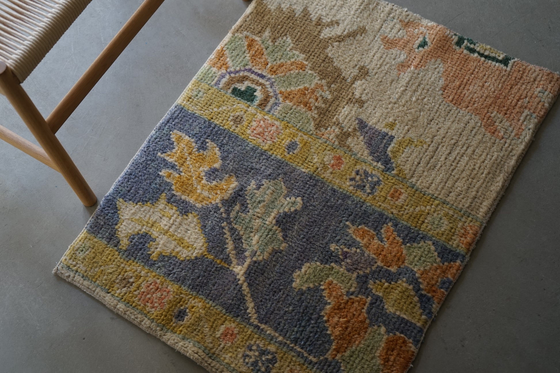 様々なシーンで使えるコンパクトサイズ。棚の足元やチェア、ソファの座面、空きスペースを飾るラグとしていかがでしょうか。