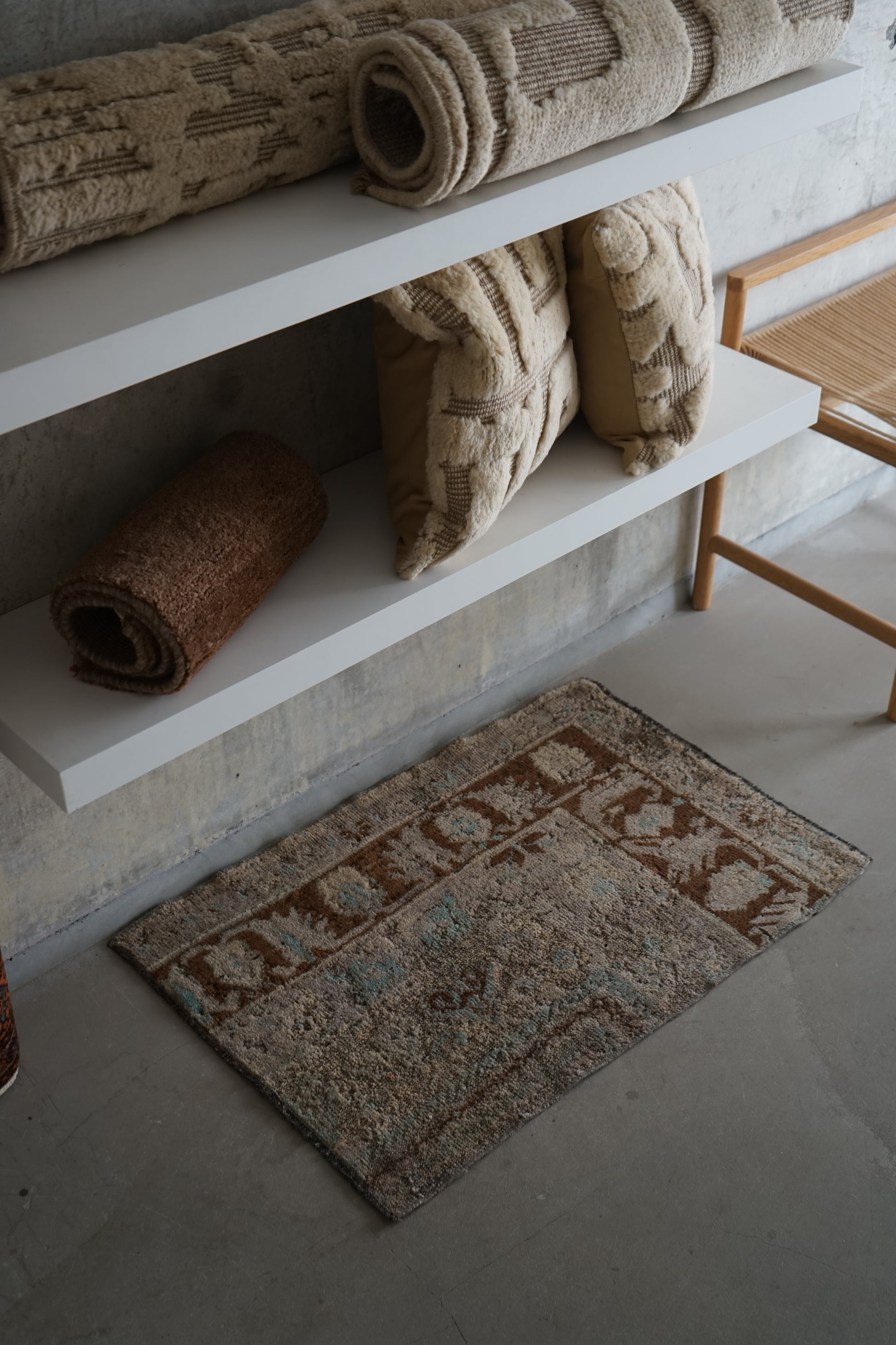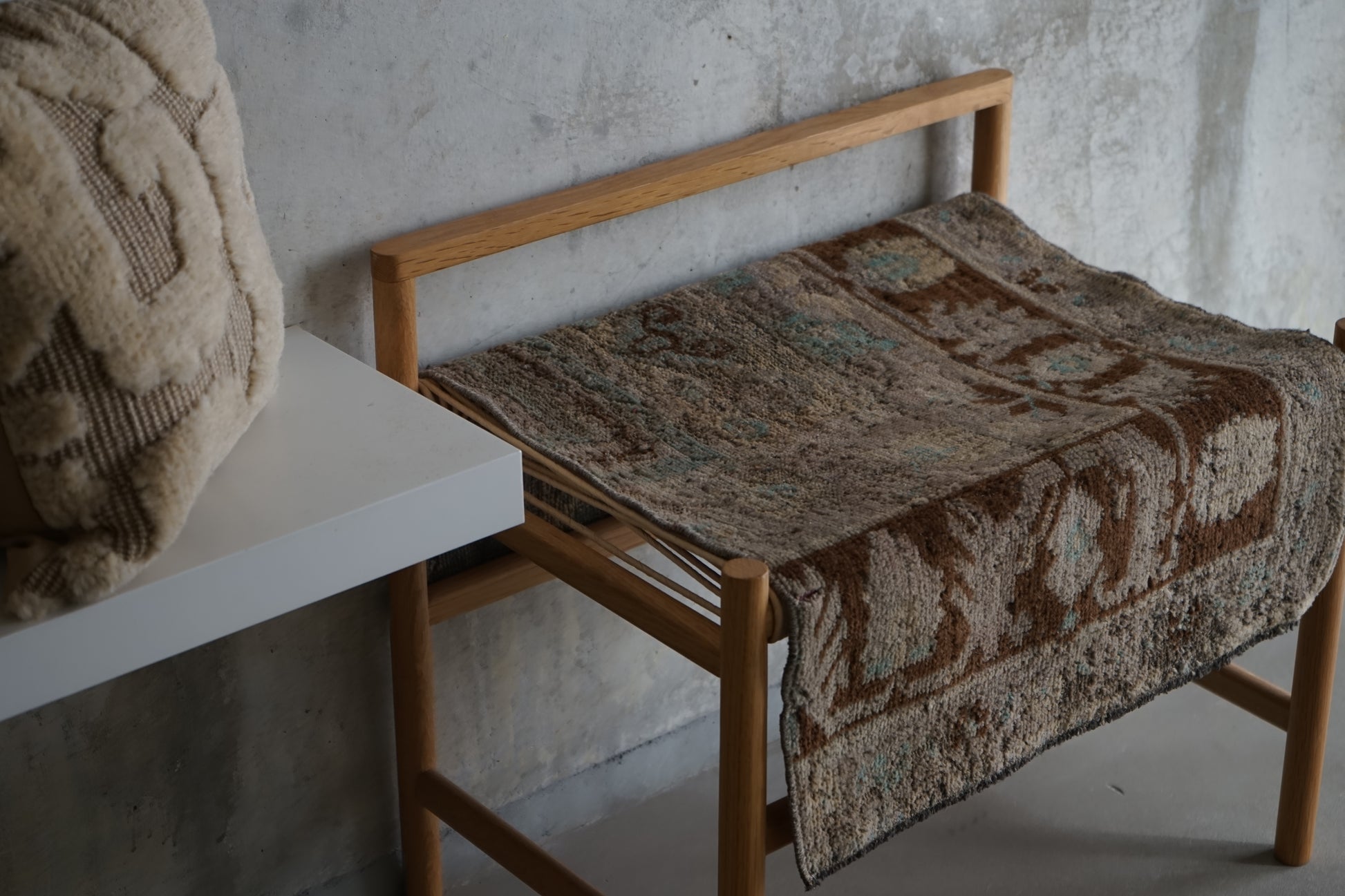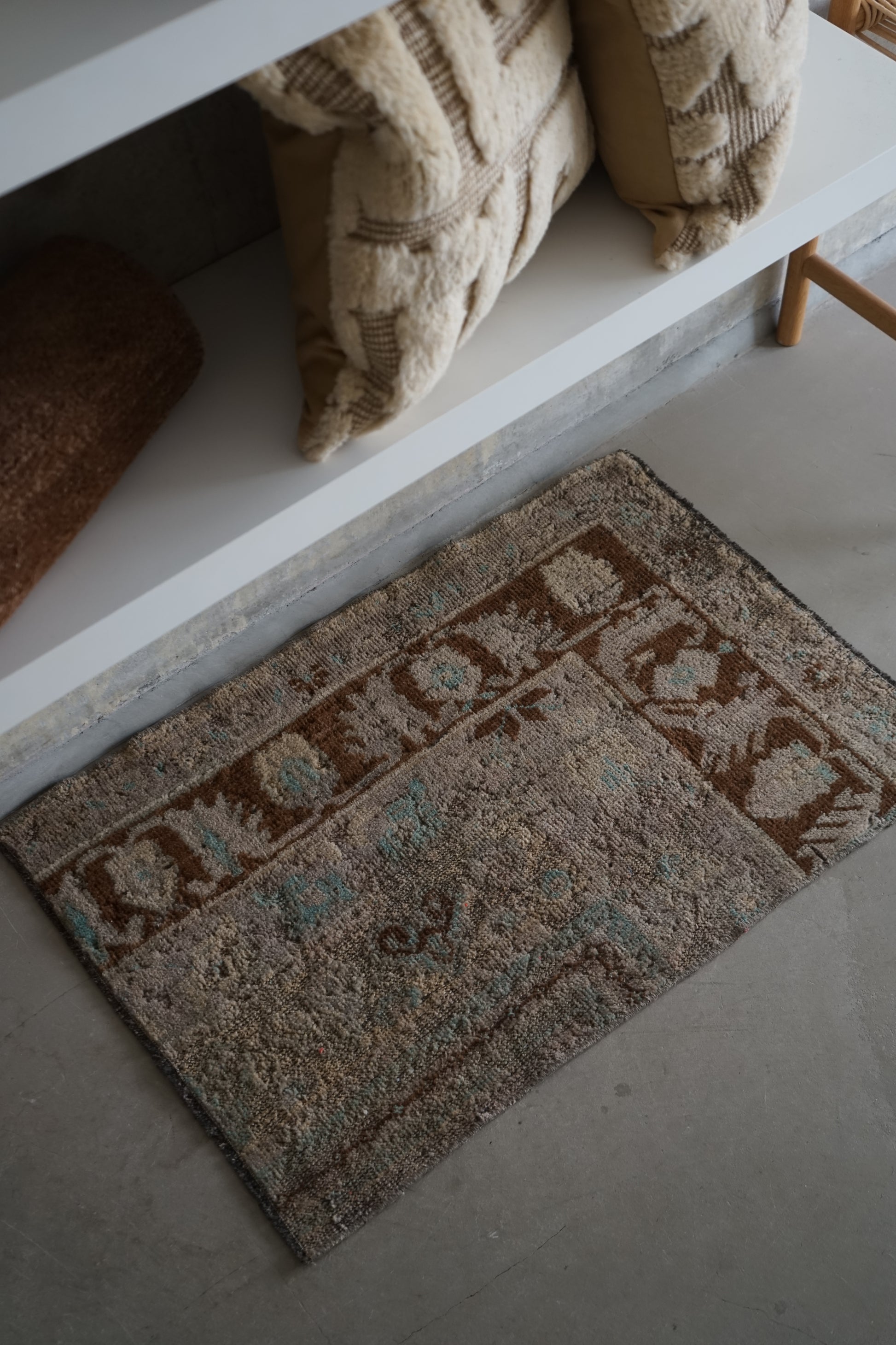 ナチュラルインテリアにお薦めのオリエンタルラグ。もとは絨毯だったものを小さくリメイクされています。