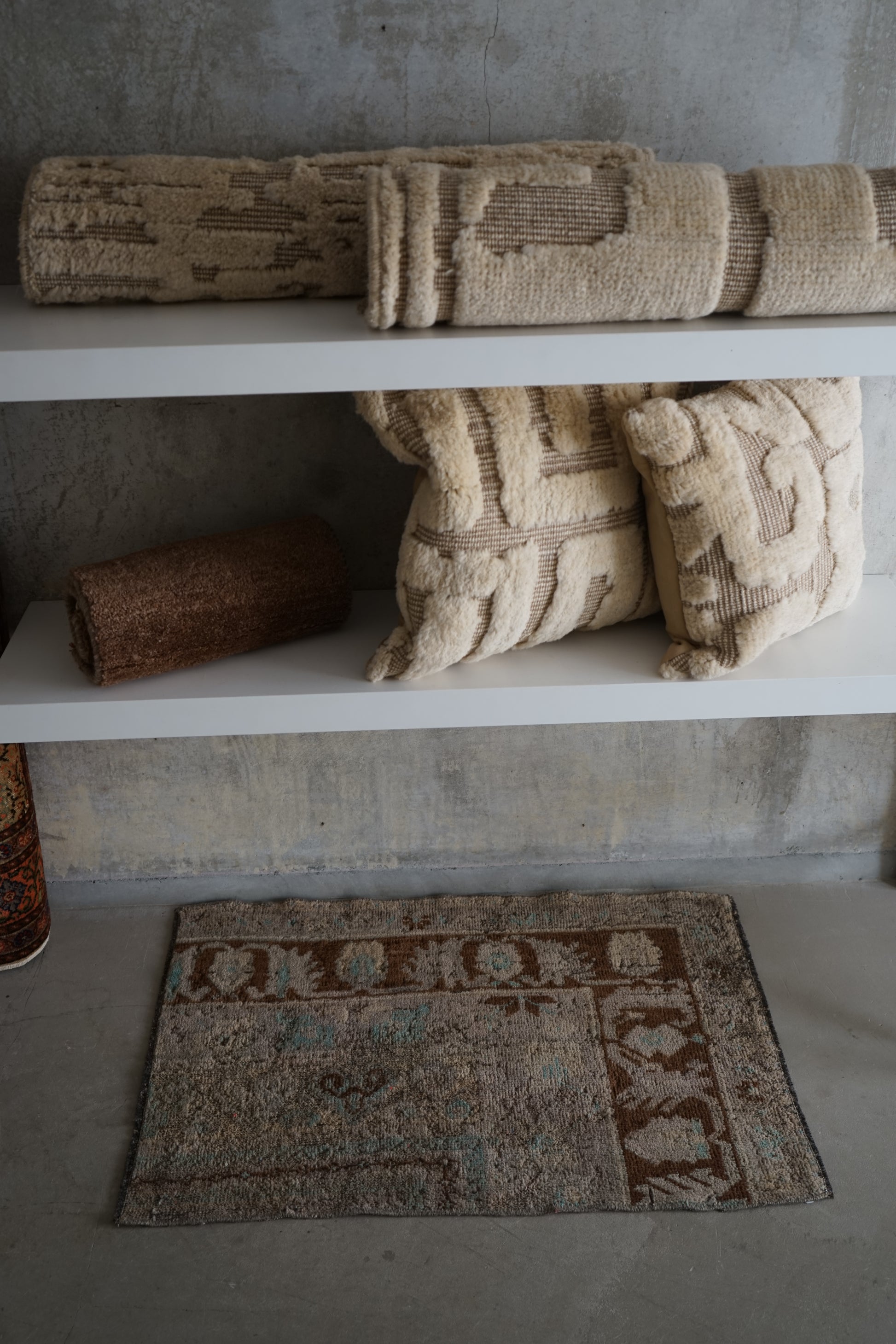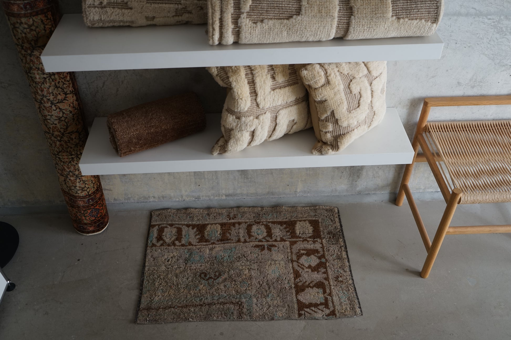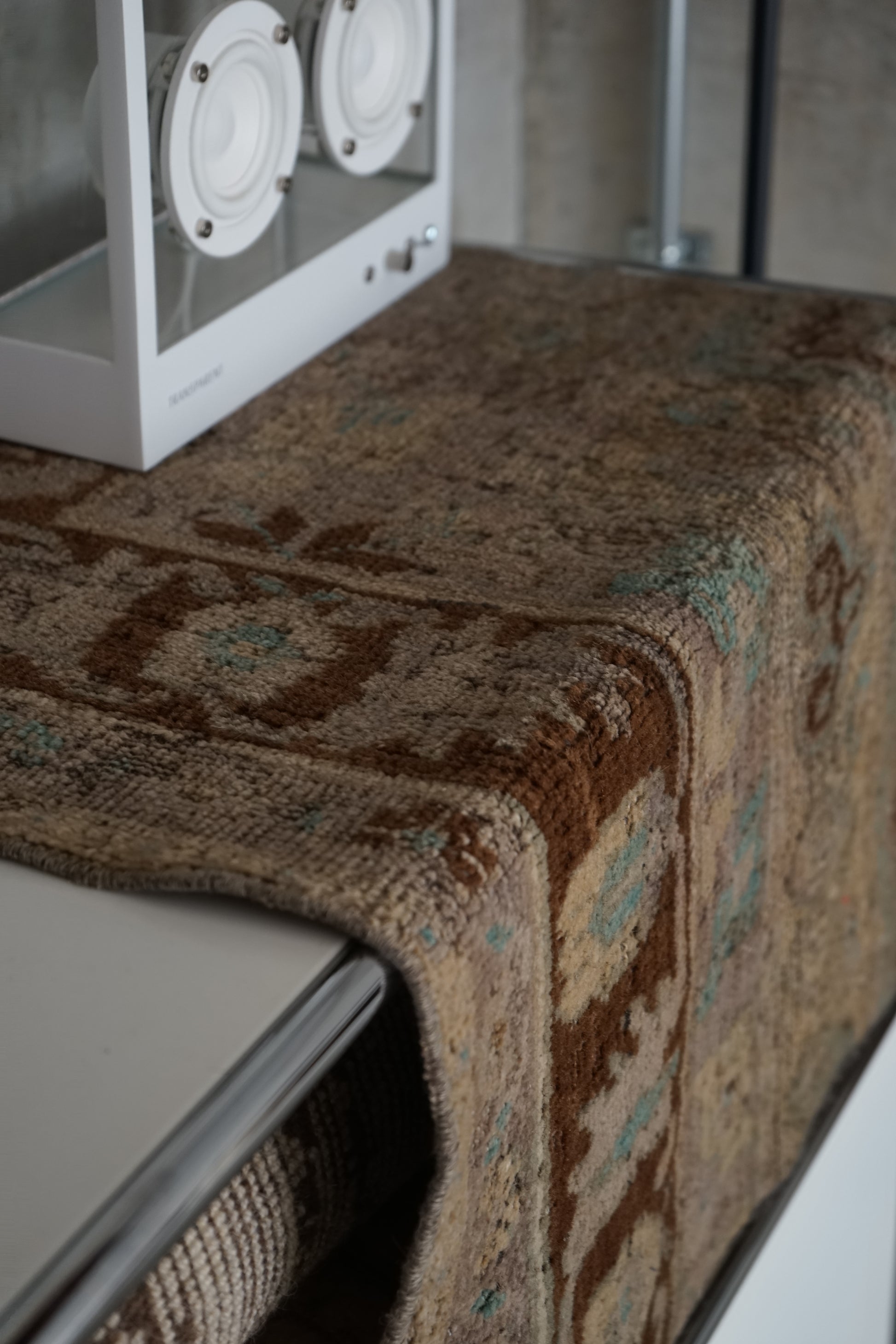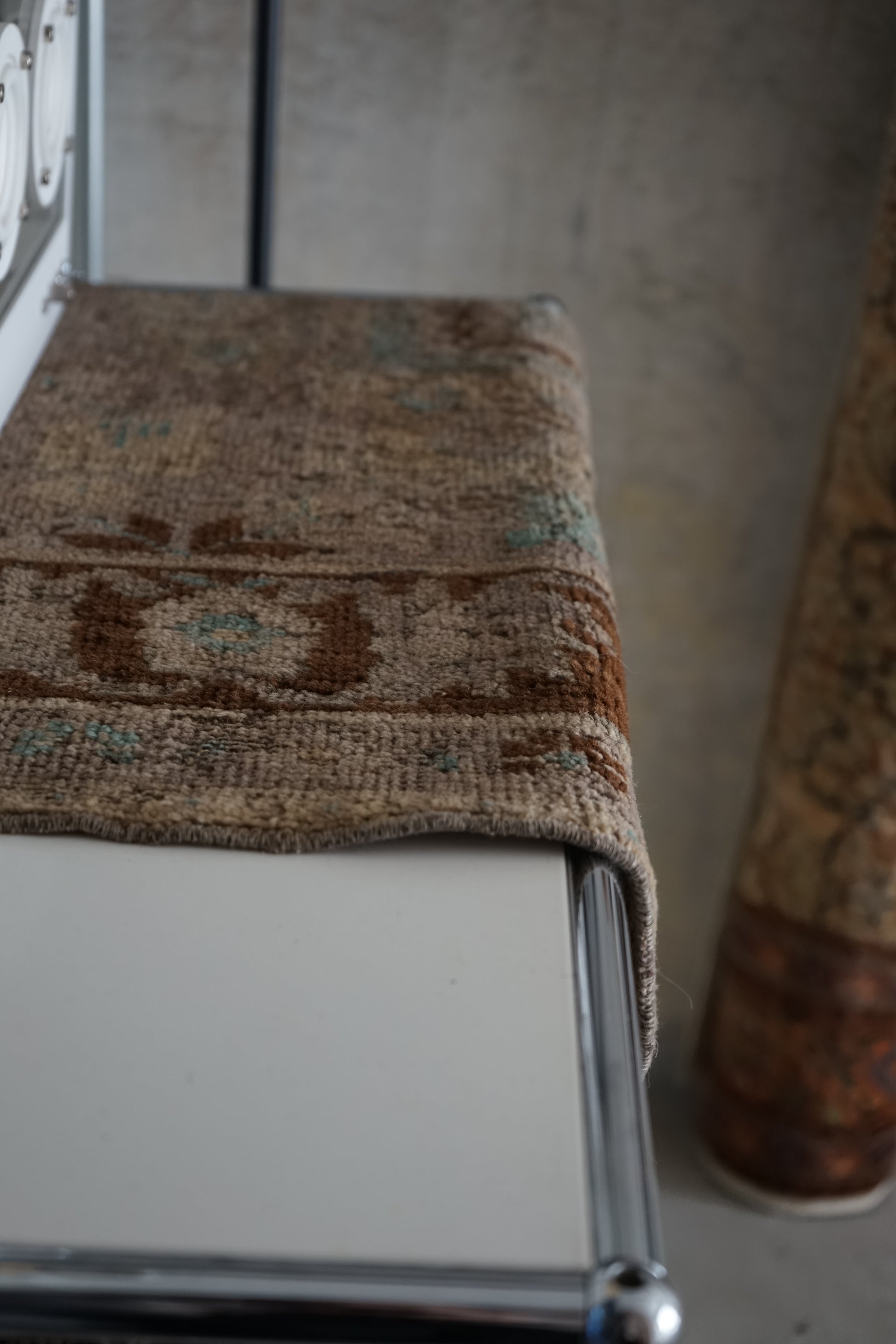 ナチュラルインテリアにお薦めのオリエンタルラグ。もとは絨毯だったものを小さくリメイクされています。