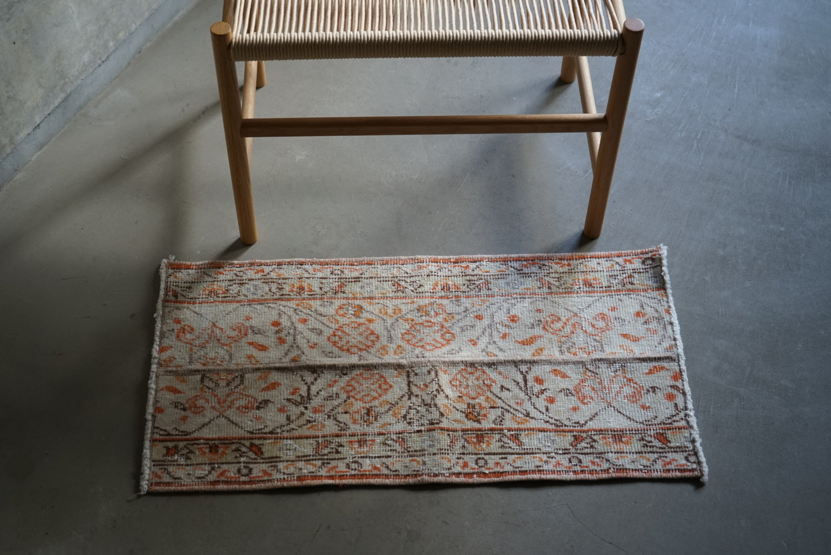 ナチュラルインテリアにお薦めのオリエンタルラグ。もとは絨毯だったものをパッチワークして小さくリメイクされています。