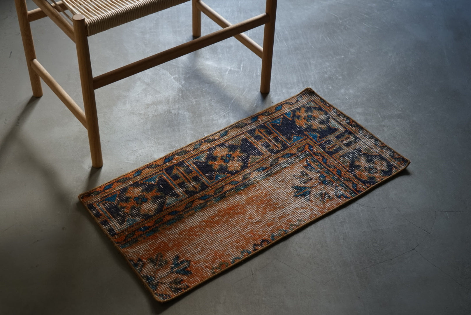 ナチュラルインテリアにお薦めのオリエンタルラグ。もとは絨毯だったものを小さくリメイクされています。