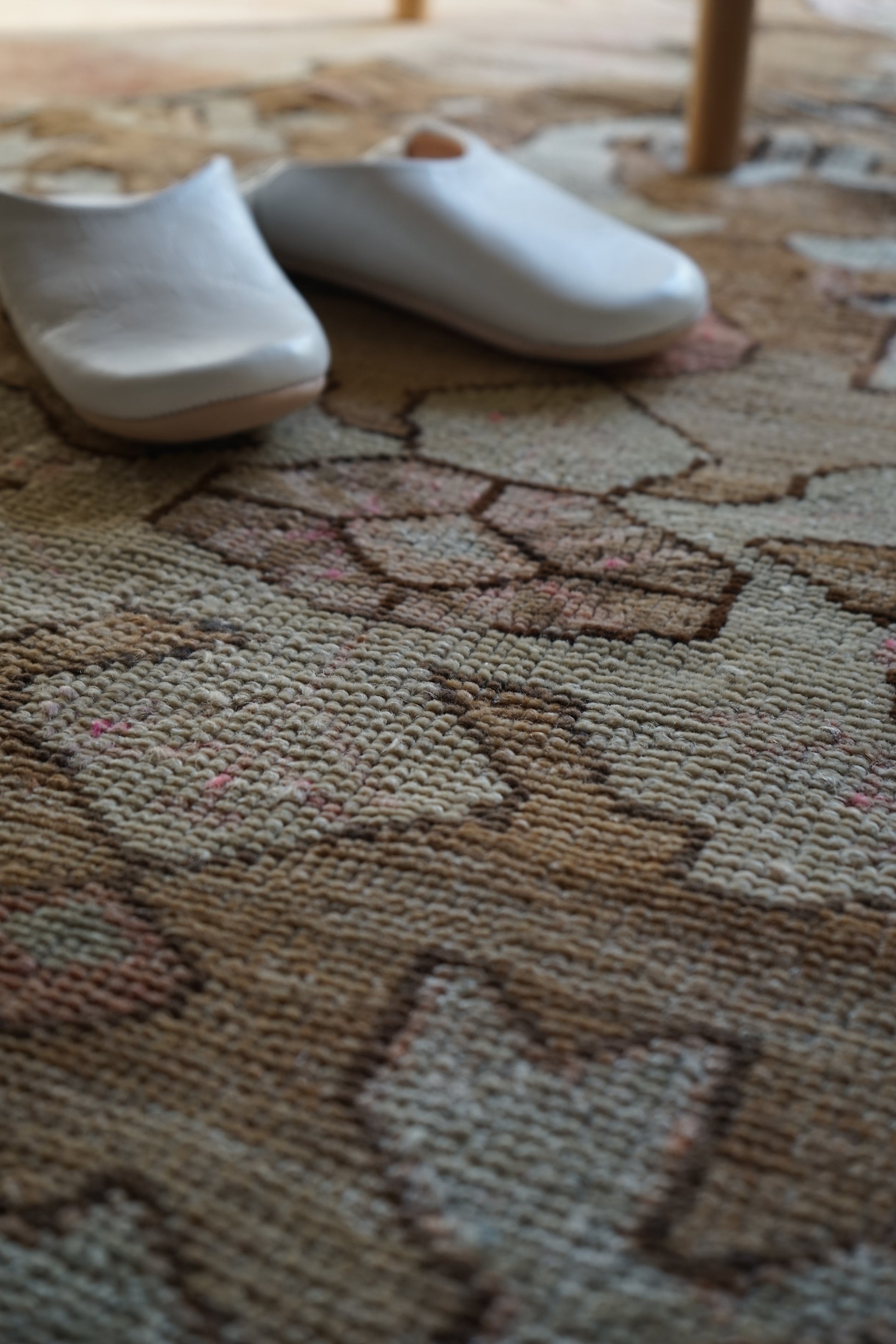 4) 水洗い 当店のすべての羊毛絨毯は水洗いして頂けます。"洗って繰り返し使う"そんな暮らしの道具としての絨毯を理想としています。