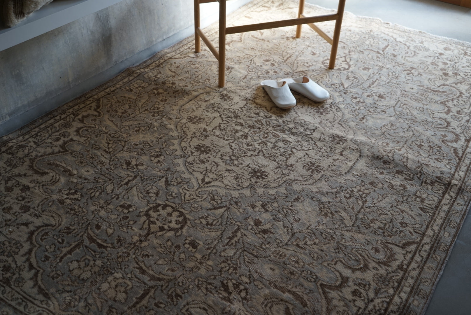 4) 水洗い 当店のすべての羊毛絨毯は水洗いして頂けます。"洗って繰り返し使う"そんな暮らしの道具としての絨毯を理想としています。