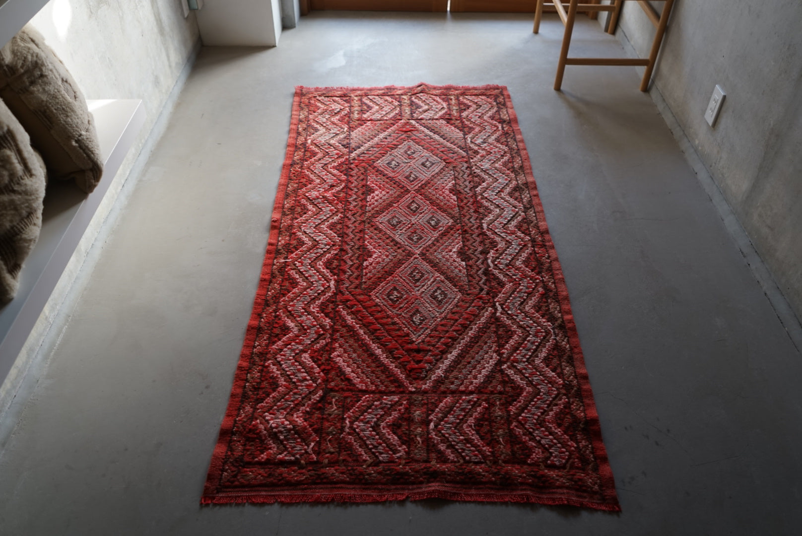※ ヴィンテージラグの商品状態は多種多様です。未使用のままきれいに保管されていたもの、何世代にも渡り使用されていた使用感のあるものとでは全く異なります。ご使用目的、用途を十分にご配慮いただきお求めください。