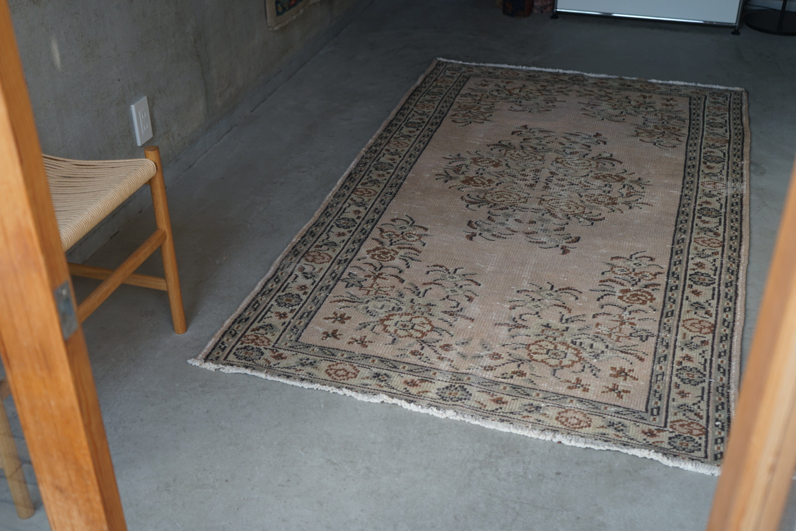 慎重に選んだやわらかな掠れ感の一枚。濃すぎず、色とカラーバランスが良いのでナチュラルにご自宅のインテリアに溶け込んでくれることと思います。万能のコーディネートをみせてくれる一枚です。