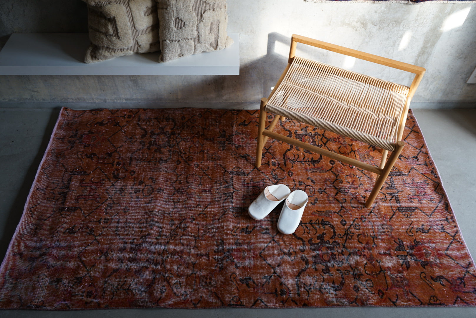 お部屋の様々なシーンで活躍します。リビング、寝室、廊下マットやグルーミングの足元。観葉植物の装飾として、またはシェルフとのコーディネートなど。