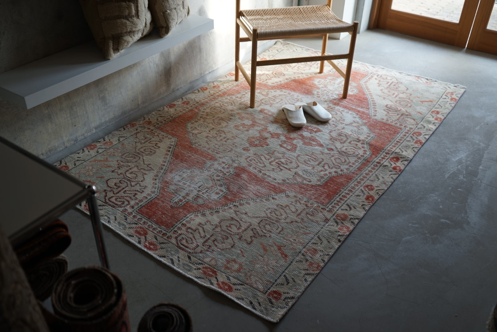 4) 水洗い 当店のすべての羊毛絨毯は水洗いして頂けます。"洗って繰り返し使う"そんな暮らしの道具としての絨毯を理想としています。