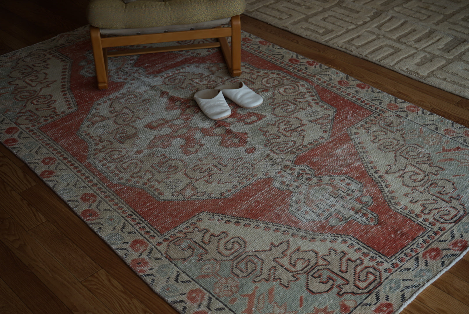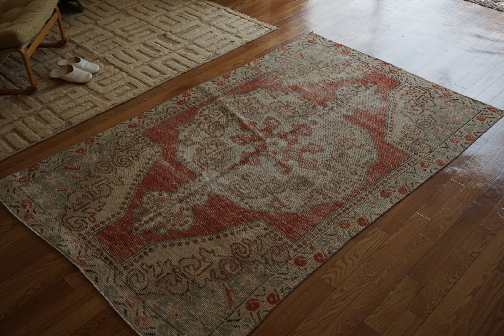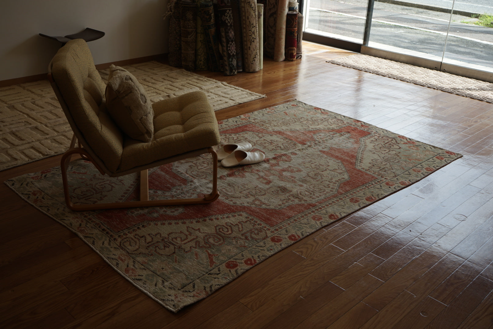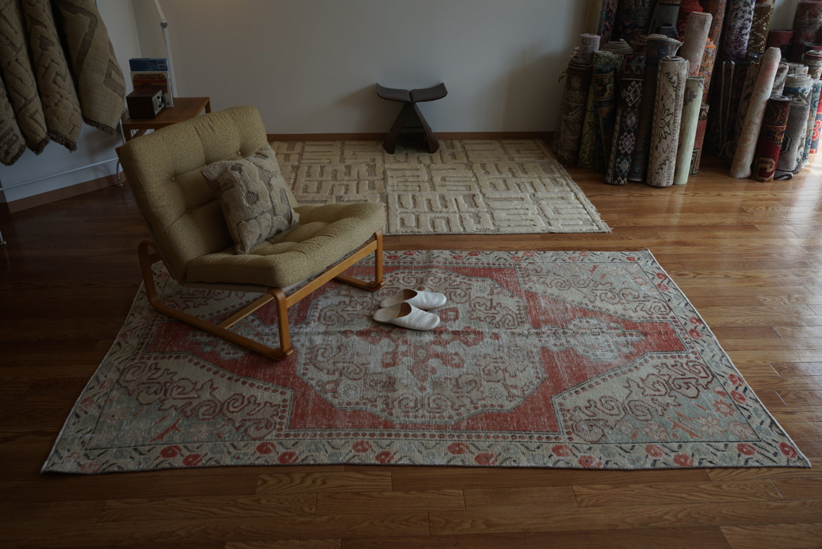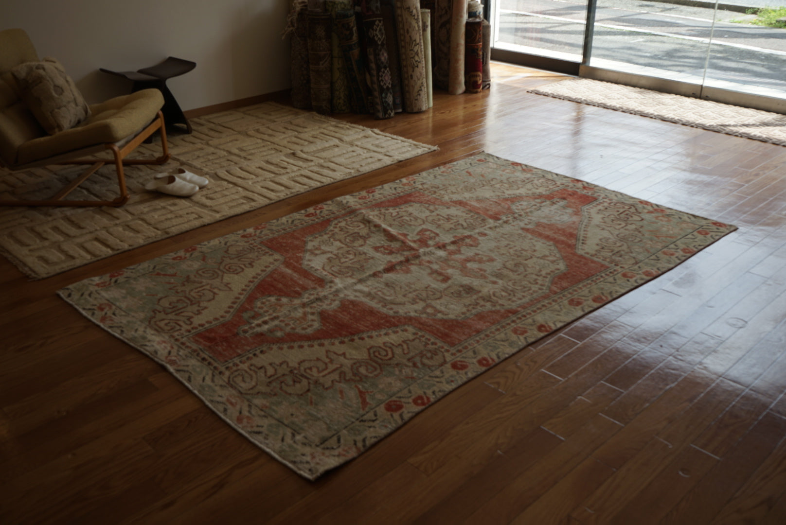 4) 水洗い 当店のすべての羊毛絨毯は水洗いして頂けます。"洗って繰り返し使う"そんな暮らしの道具としての絨毯を理想としています。