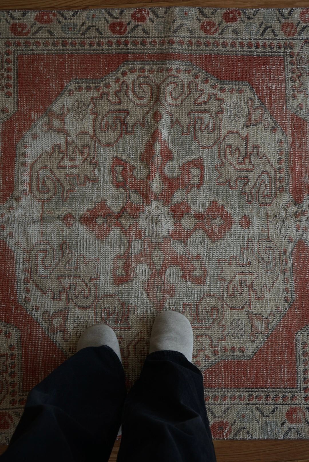 慎重に選んだやわらかな掠れ感の一枚。濃すぎず、色とカラーバランスが良いのでナチュラルにご自宅のインテリアに溶け込んでくれることと思います。万能のコーディネートをみせてくれる一枚です。