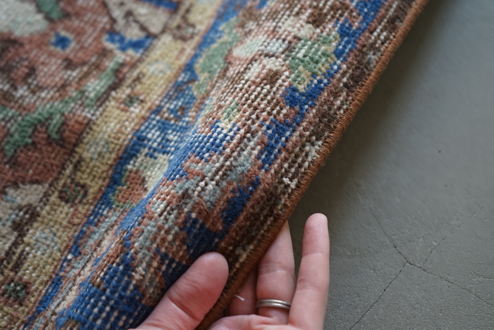 ※ ヴィンテージラグの商品状態は多種多様です。未使用のままきれいに保管されていたもの、何世代にも渡り使用されていた使用感のあるものとでは全く異なります。ご使用目的、用途を十分にご配慮いただきお求めください。