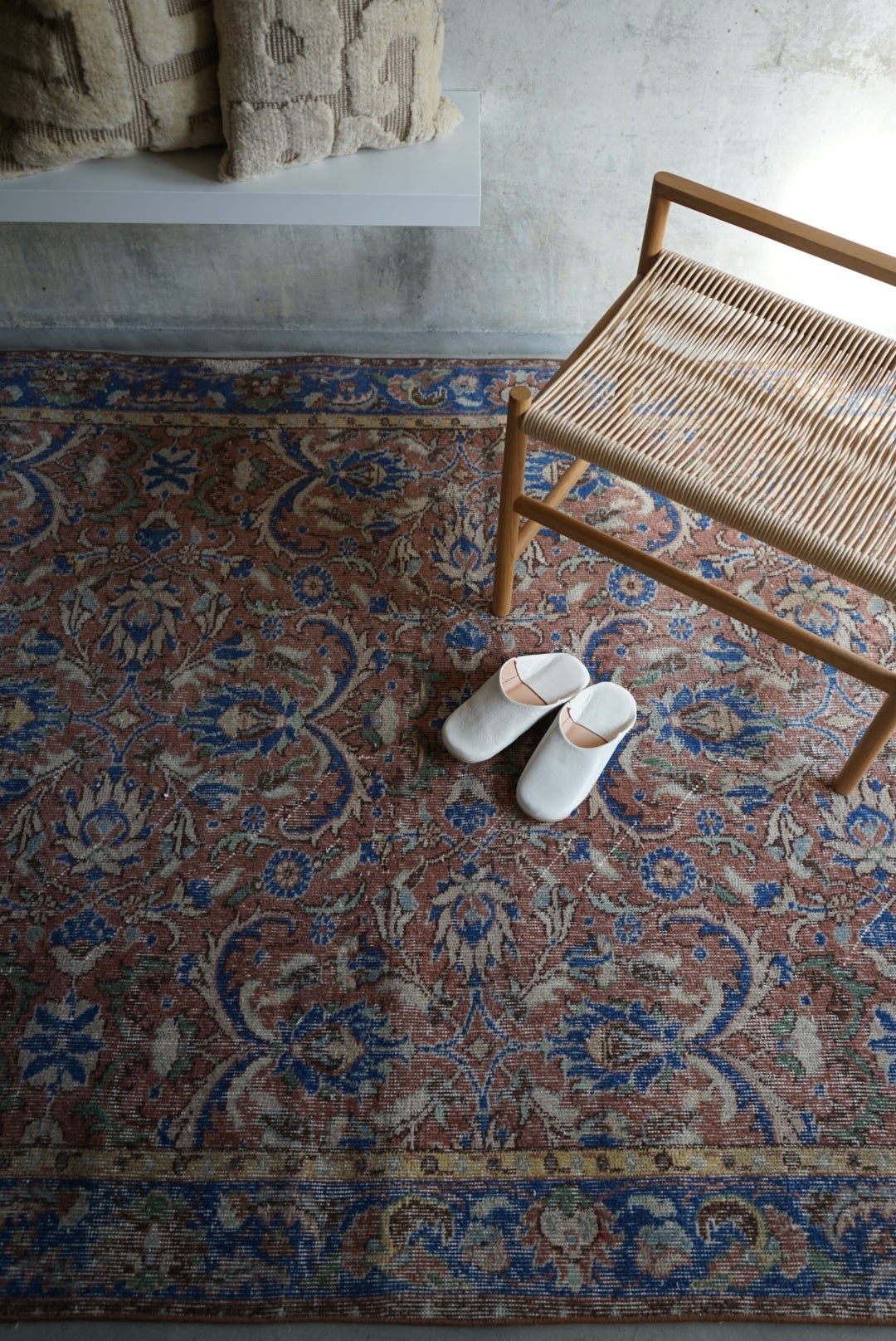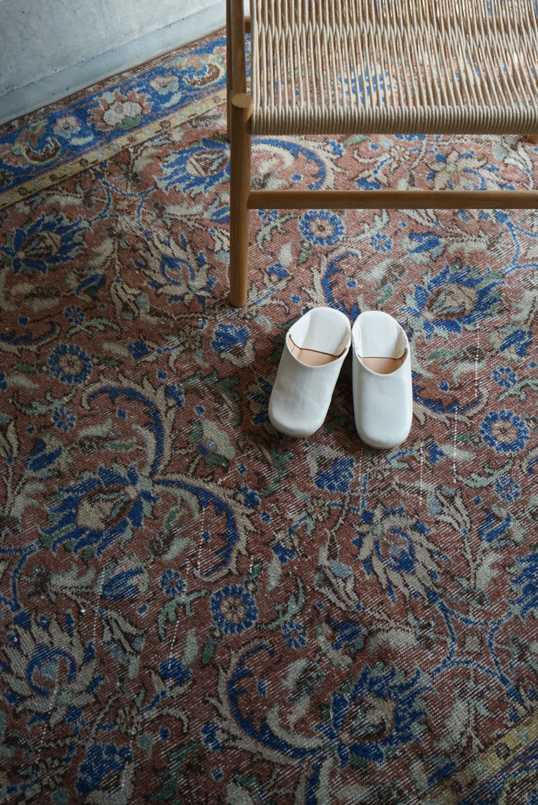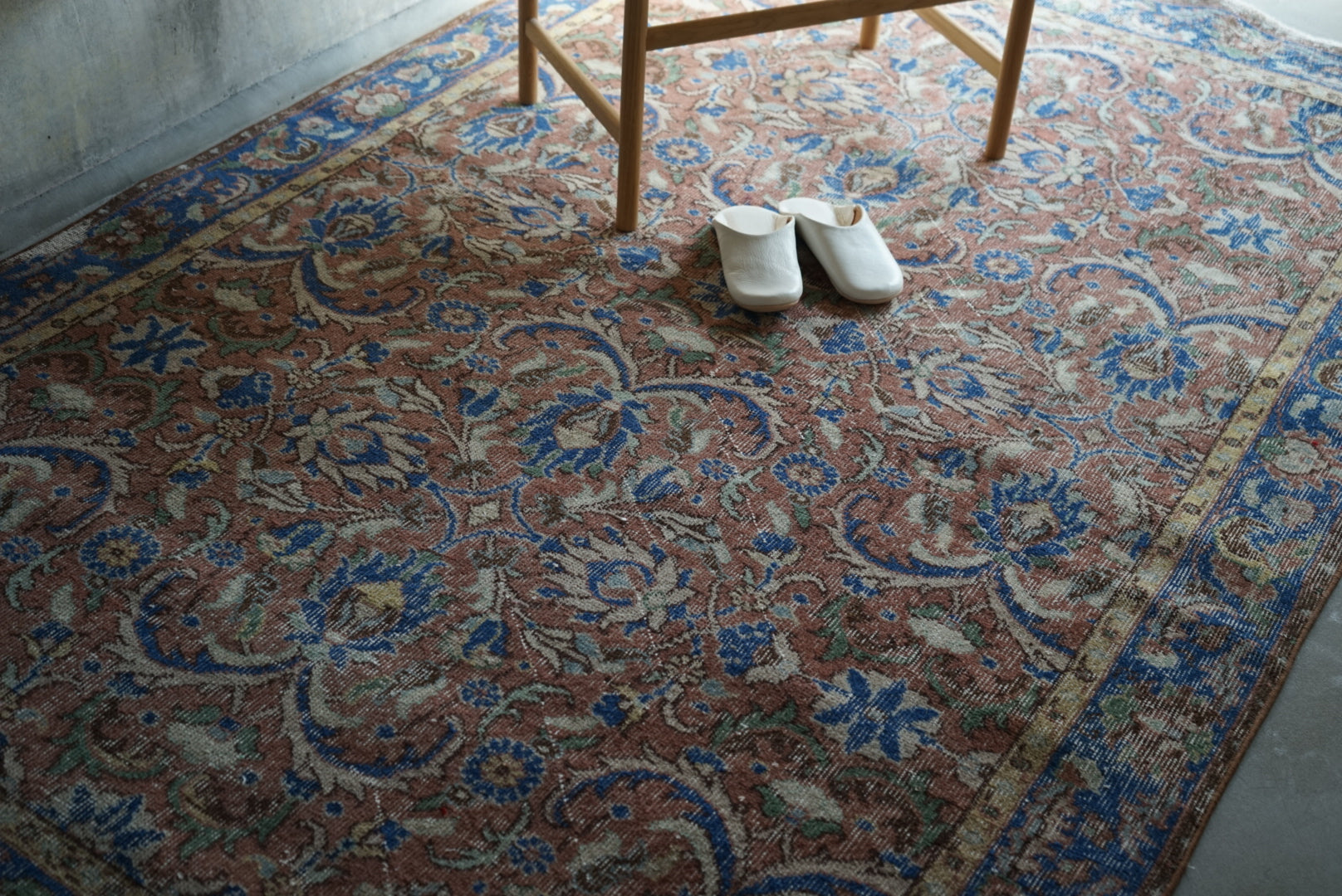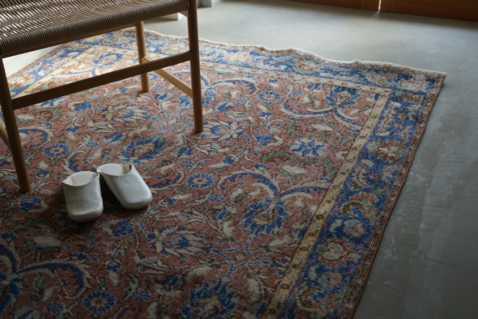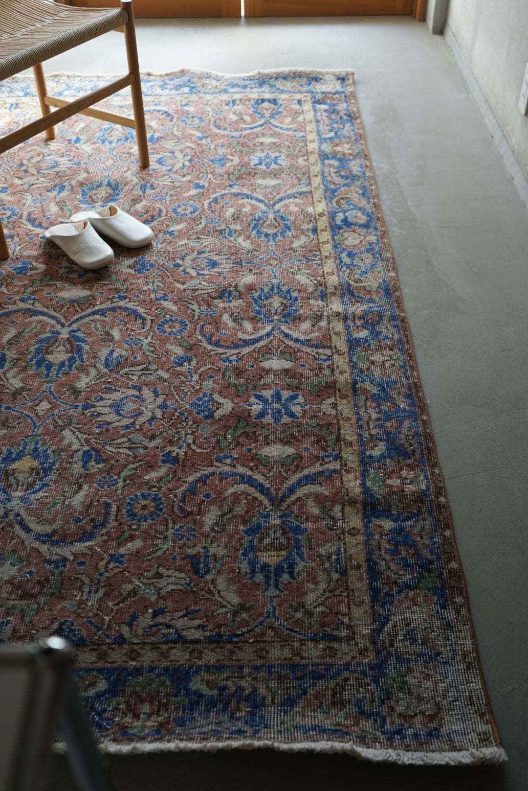 慎重に選んだやわらかな掠れ感の一枚。濃すぎず、色とカラーバランスが良いのでナチュラルにご自宅のインテリアに溶け込んでくれることと思います。万能のコーディネートをみせてくれる一枚です。