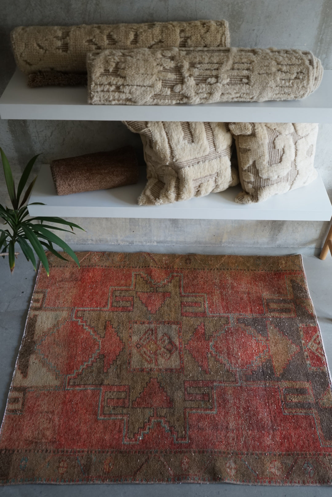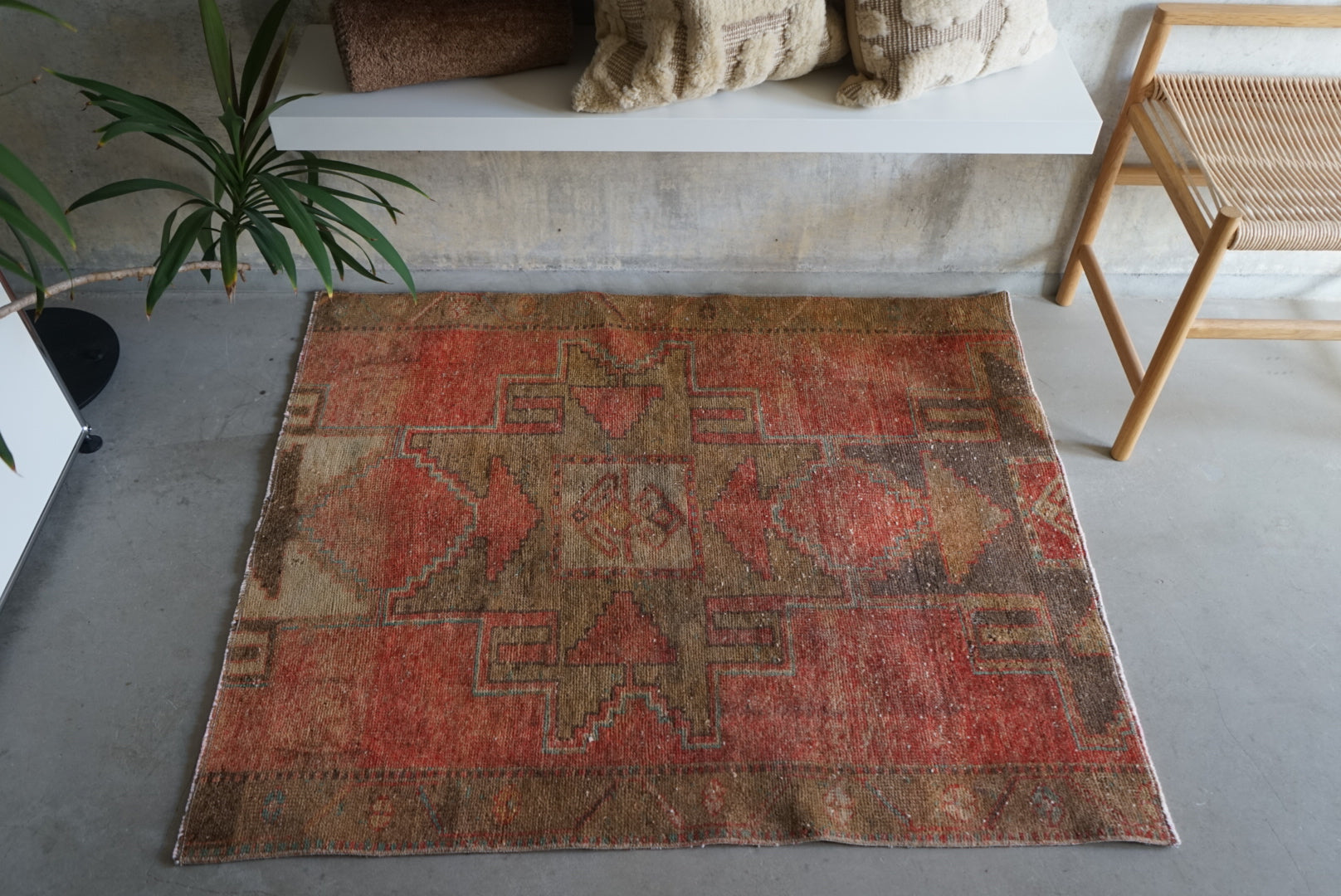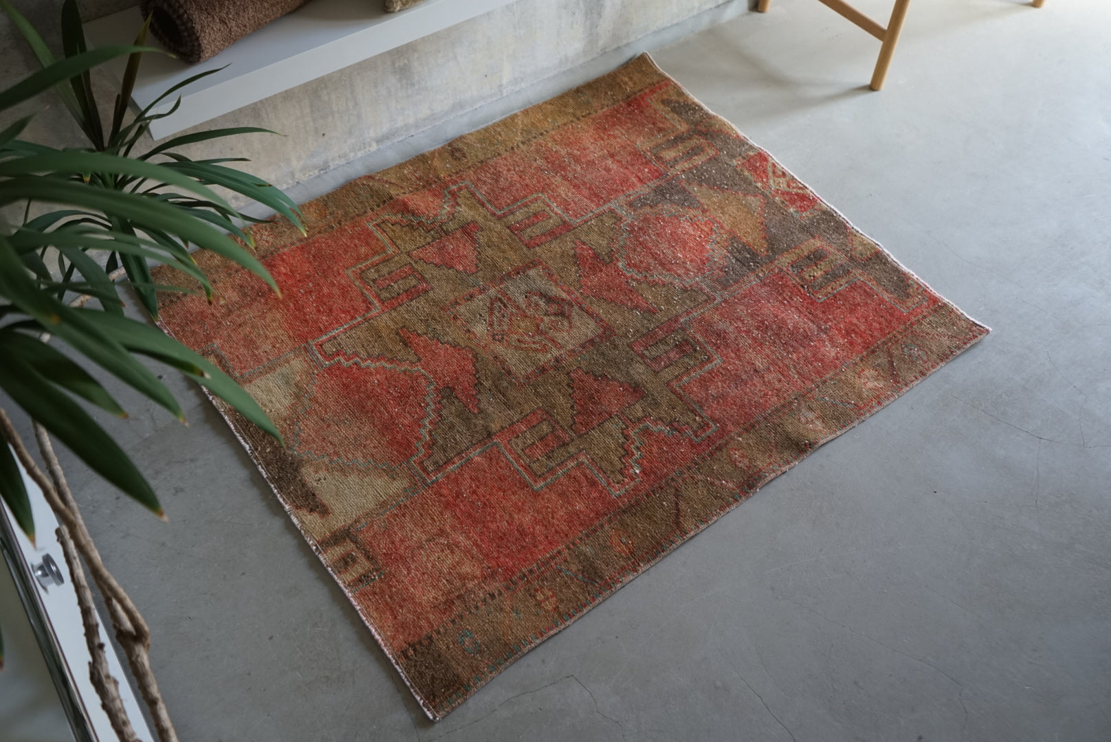Türkiye Old Oushak Orange Small size 1970年代 118 × 100 cm No.TR25247