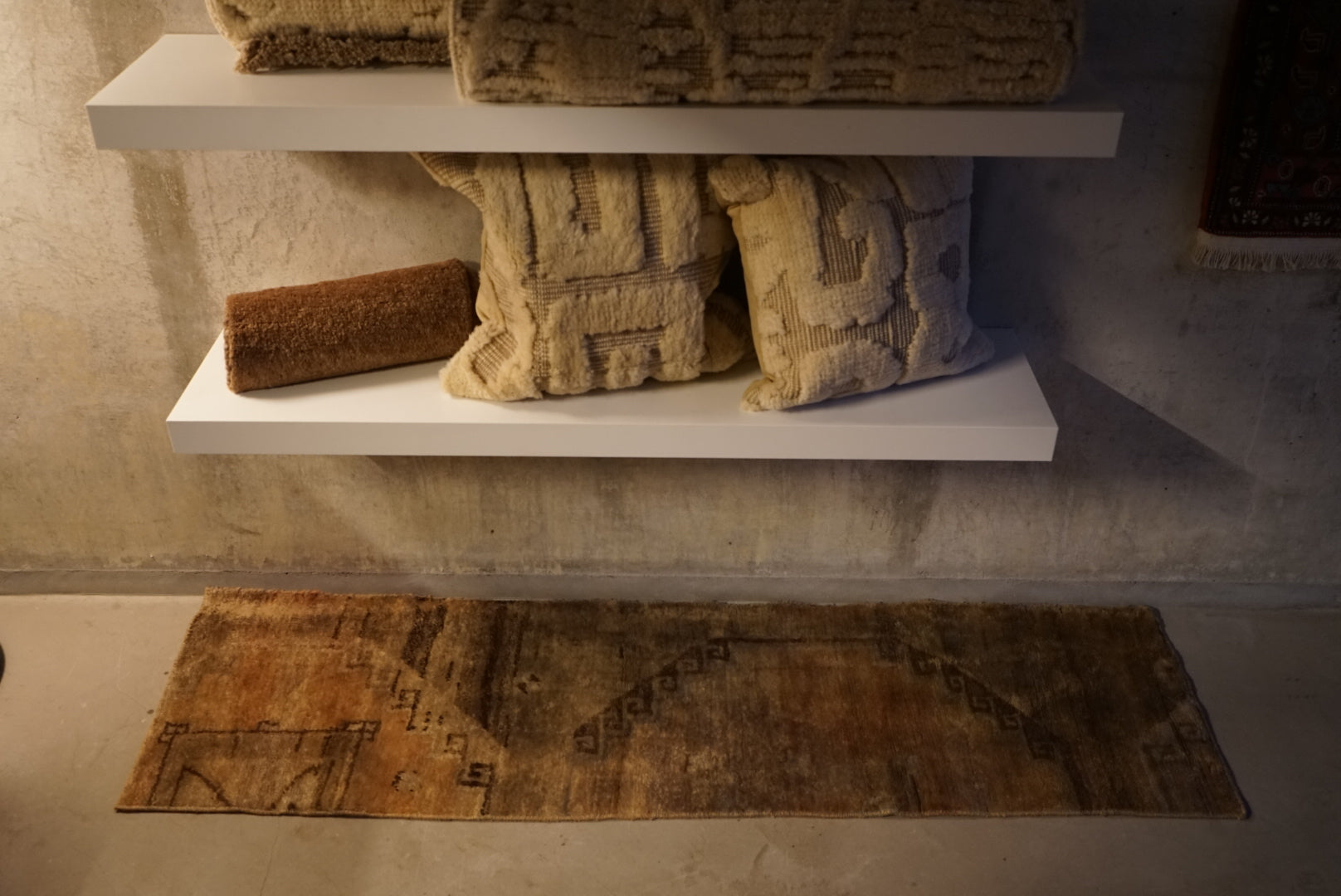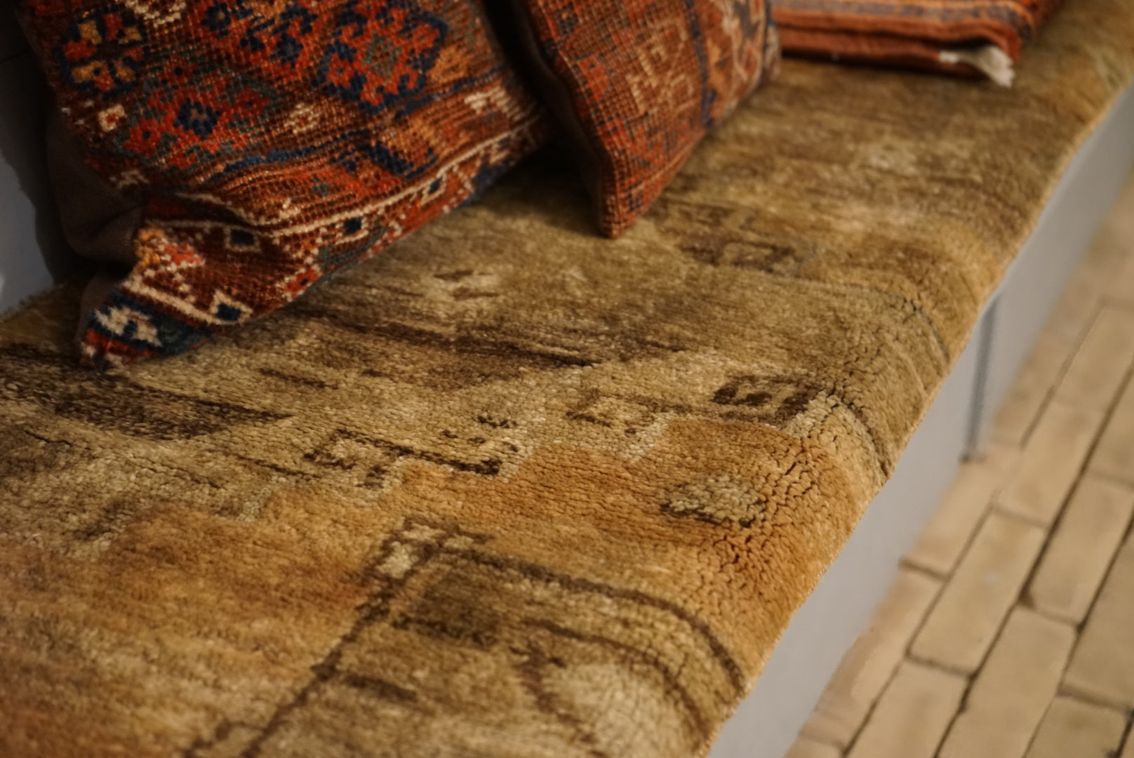 黄金色のランナーラグ。毛艶が良いので存在感バッチリです。