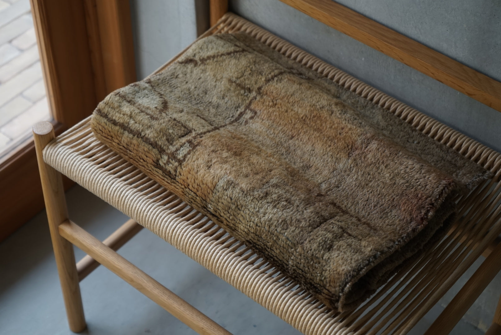慎重に選んだやわらかな掠れ感の一枚。濃すぎず、色とカラーバランスが良いのでナチュラルにご自宅のインテリアに溶け込んでくれることと思います。万能のコーディネートをみせてくれる一枚です。