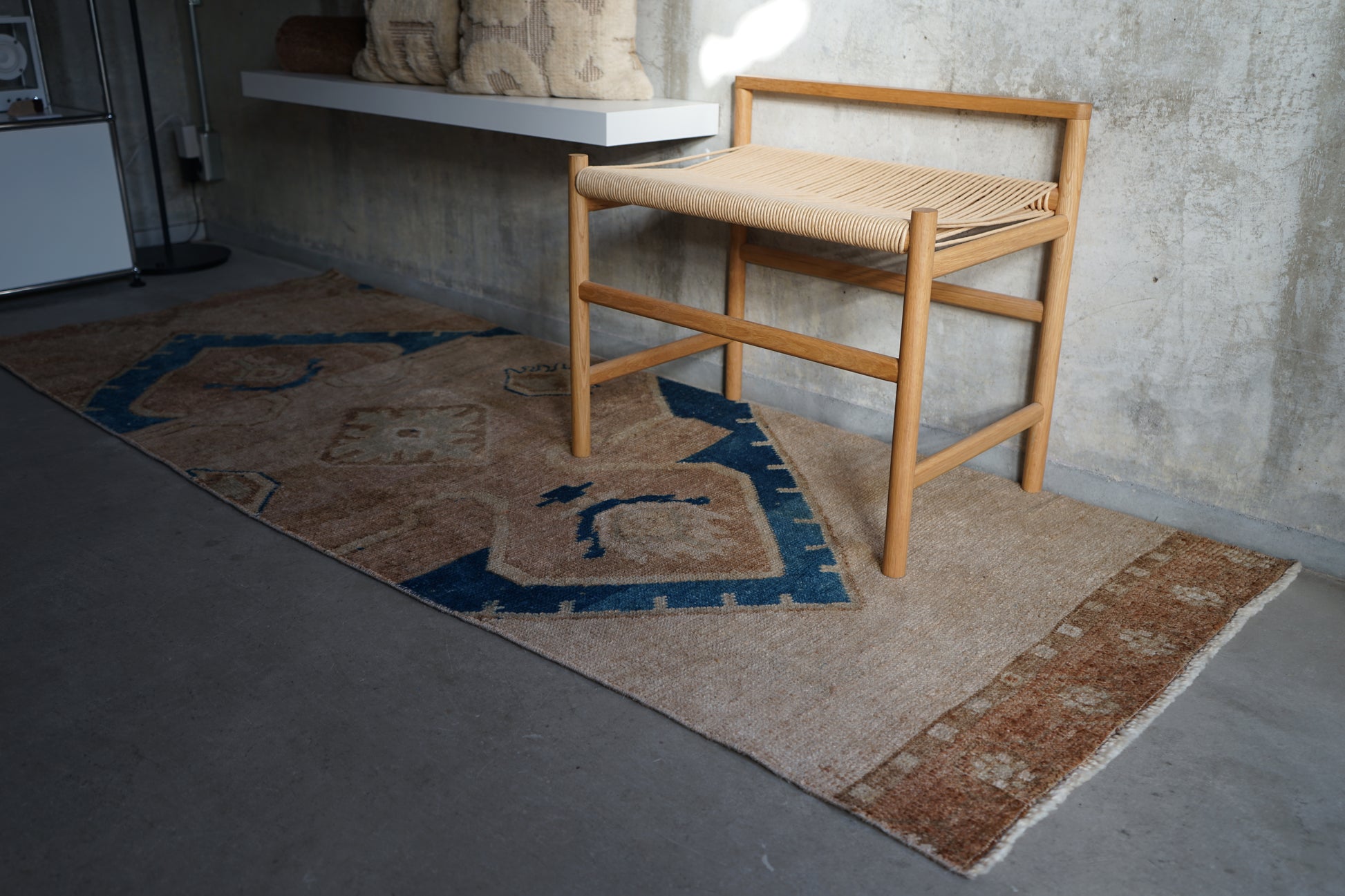 慎重に選んだやわらかな掠れ感の一枚。濃すぎず、色とカラーバランスが良いのでナチュラルにご自宅のインテリアに溶け込んでくれることと思います。万能のコーディネートをみせてくれる一枚です。