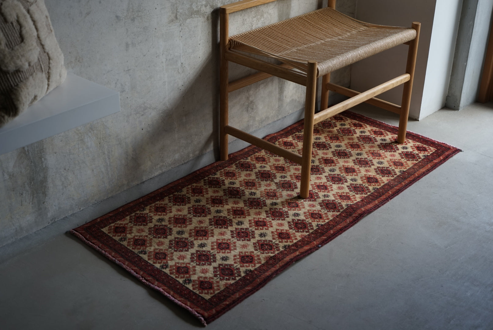 濃淡つけた赤茶色が馴染み良いベージュランナーラグ。
