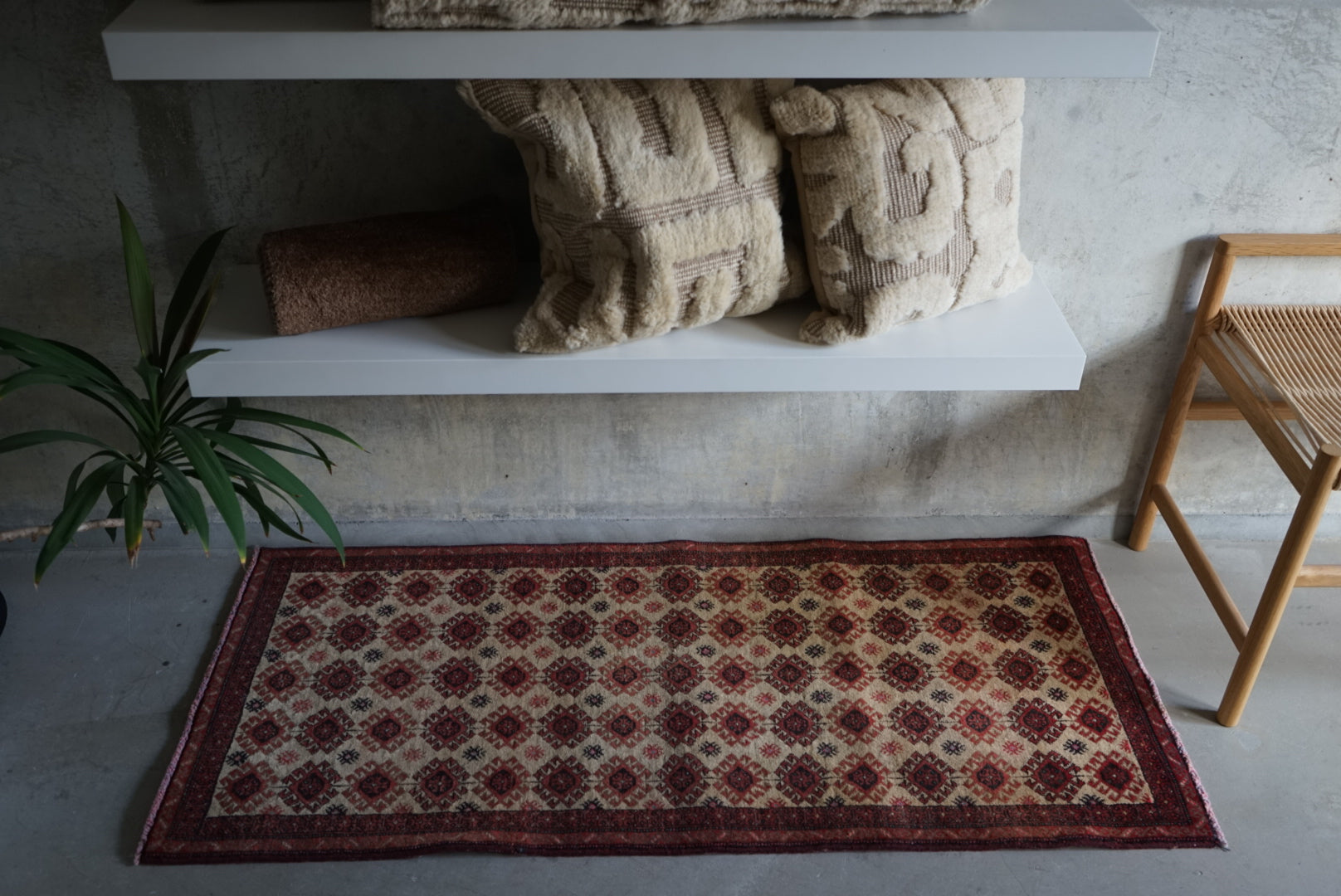 慎重に選んだやわらかな掠れ感の一枚。濃すぎず、色とカラーバランスが良いのでナチュラルにご自宅のインテリアに溶け込んでくれることと思います。万能のコーディネートをみせてくれる一枚です。